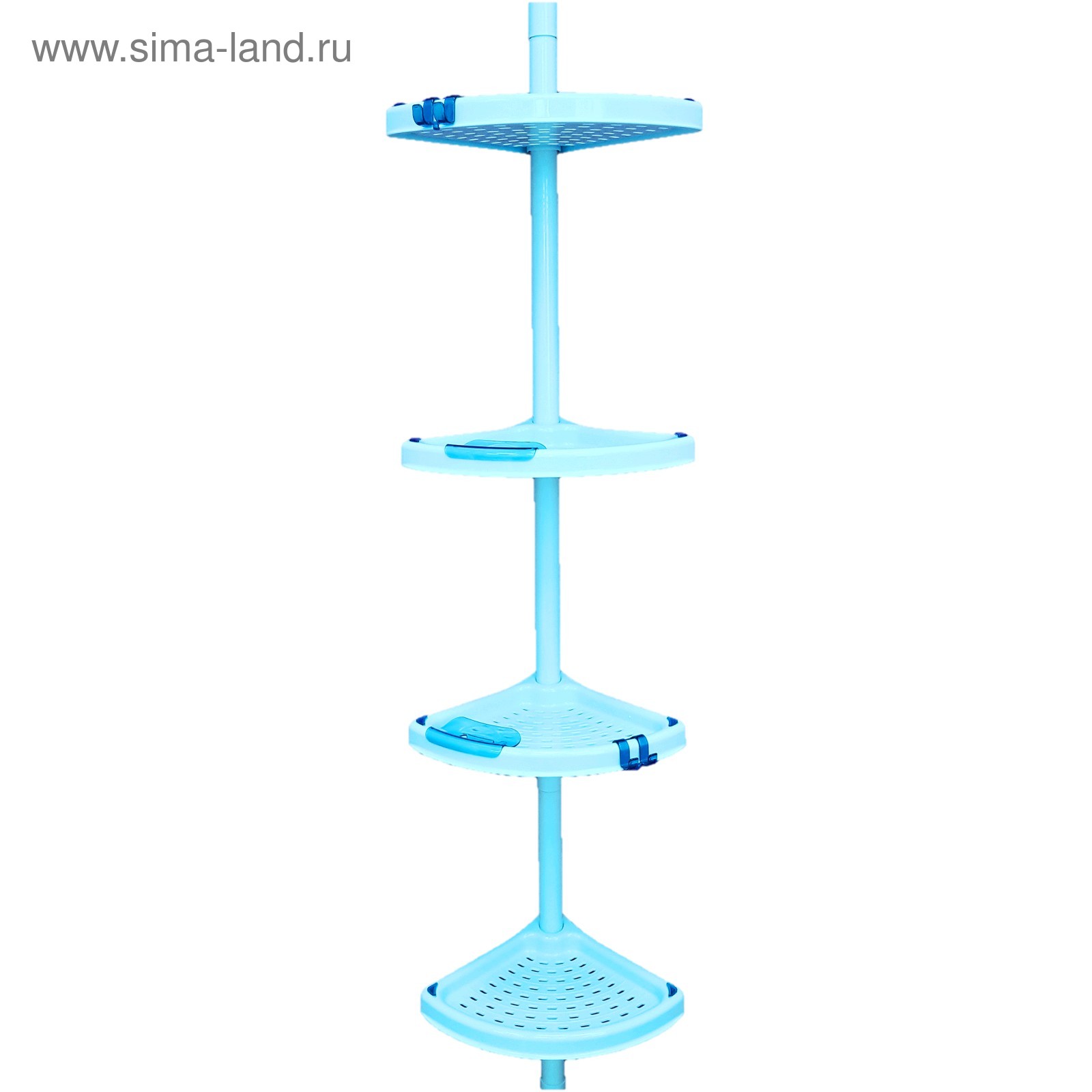 Угловая полка, 4 яруса, 135-260 см, размер полки 24,5х24,5 см, 2 крючка, цвет голубой