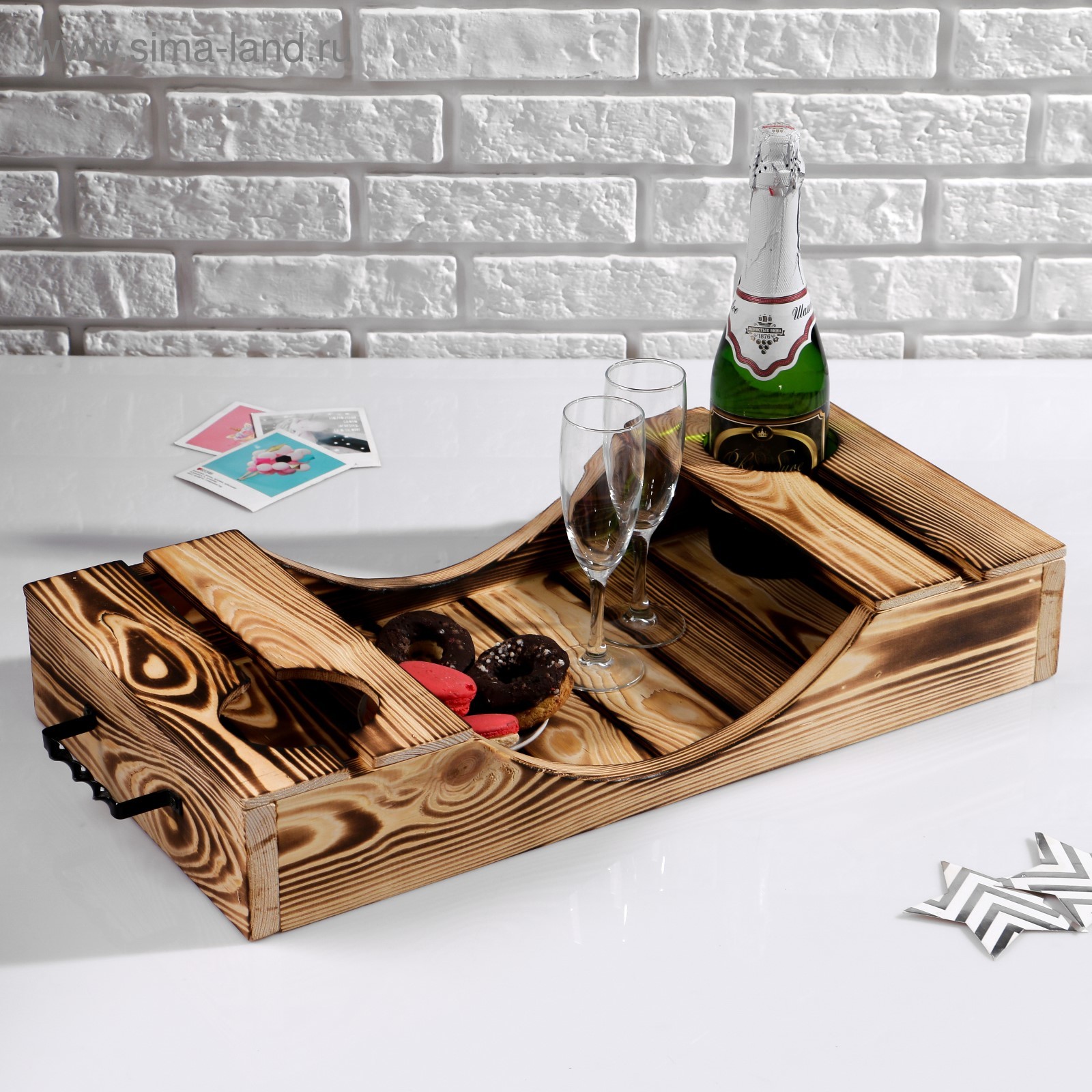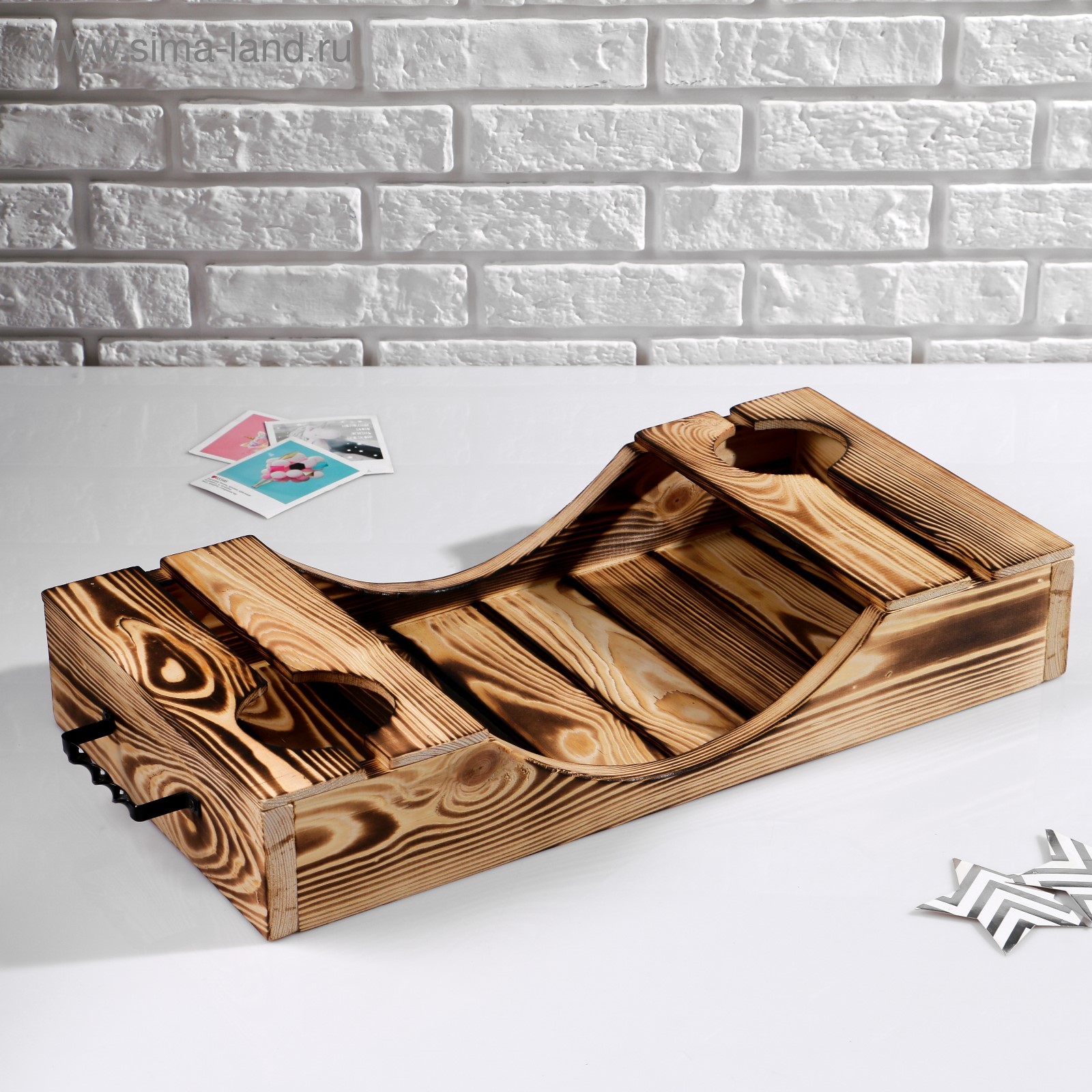 Поднос для подачи вина под две бутылки добропаровъ, 30x60 см, ручки металлические, массив дерева. Цвет: Коричневый Длина, см: 67 Ширина, см: 30.5 parts count: 0 Количество ячеек: 3 Вид дерева: Сосна Материал: Дерево Температурное ограничение: Нет Можно мыть в посудомоечной машине: Нет Форма: Фигурная  развернуть описание ▼