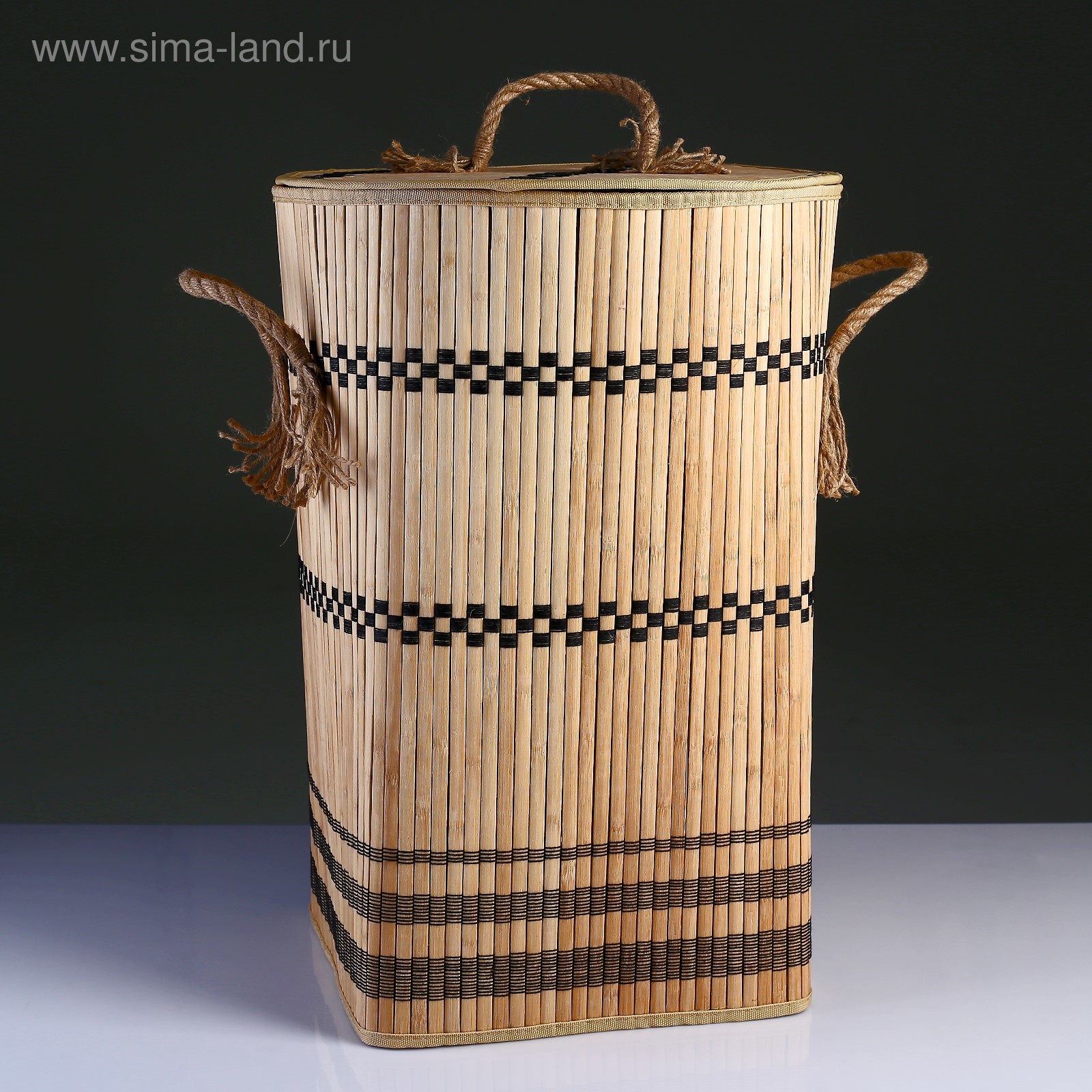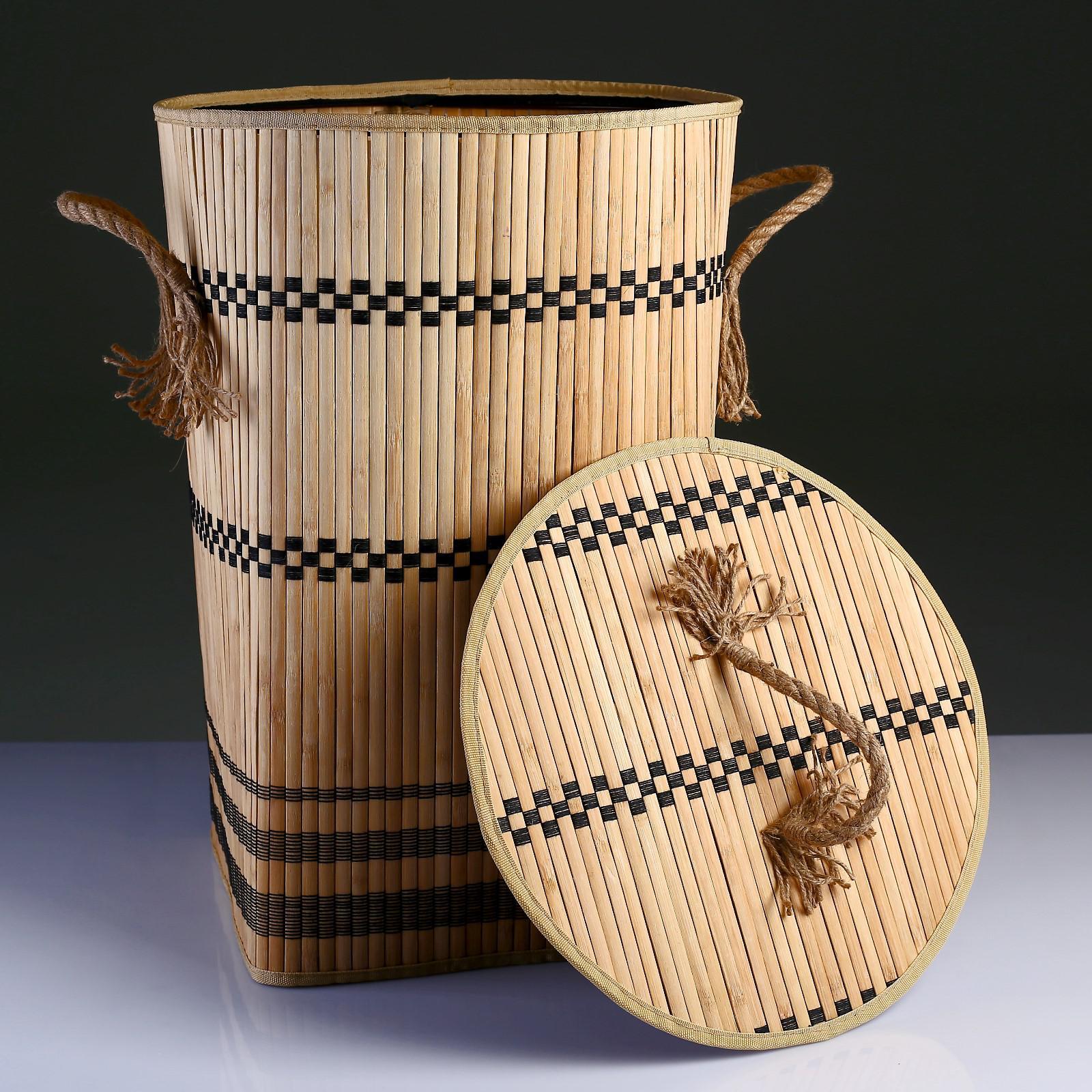 Корзина для белья с крышкой складная с ручками 39х39 см н 56 см, бамбук,джут