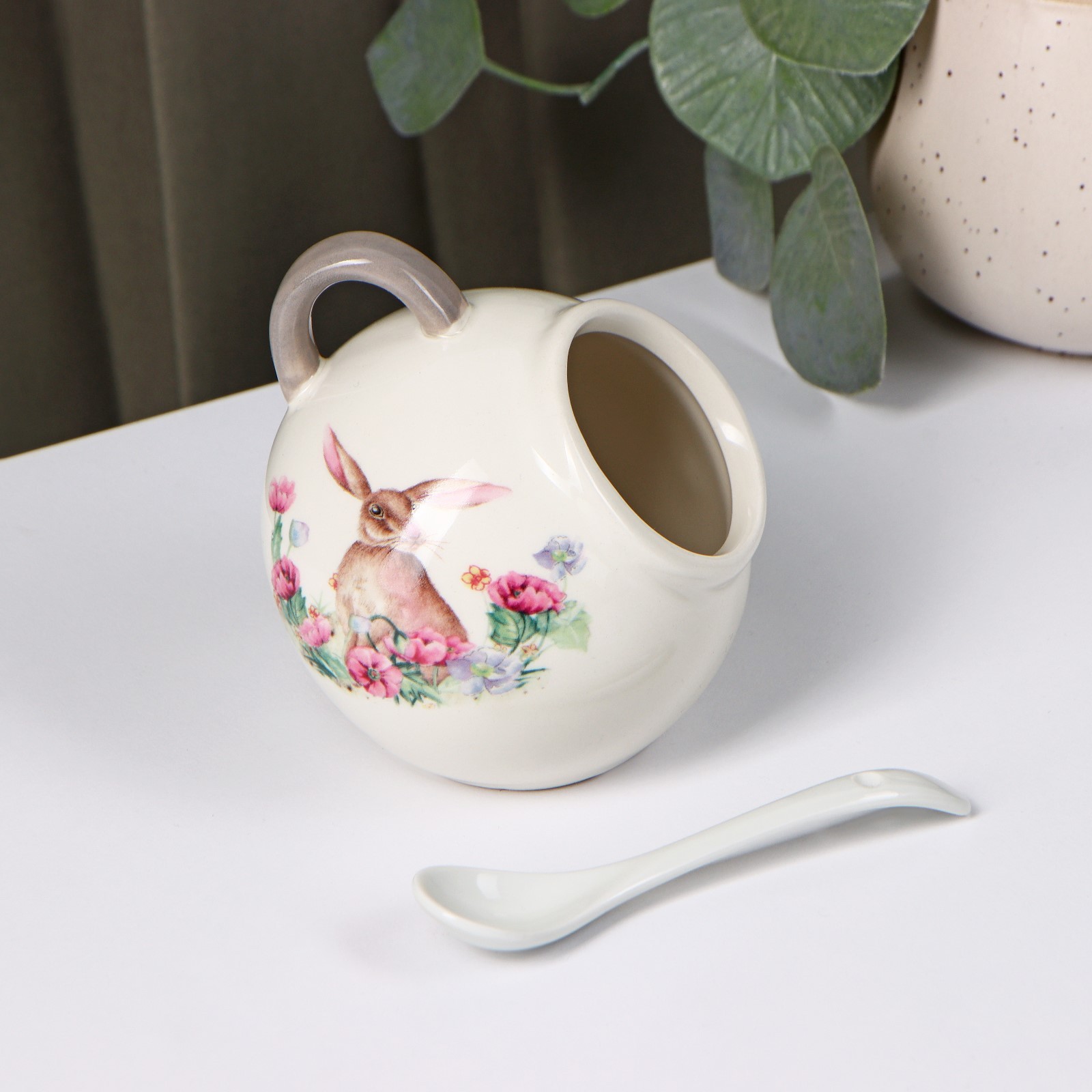 Сахарница с ложкой доляна «зайка», 200 мл, цвет белый. Сахарница гармонично дополнит сервировку стола. Элегантное изделие отличает высокое качество обработки поверхности и насыщенность цвета. Данная посуда универсальная, подходит как для сахара, так и для мёда, конфет, изюма, орехов и многого другого. Оригинальный дизайн и качество исполнения сделают такую сахарницу настоящим украшением стола к чаепитию. Она удобна в использовании и понравится каждому. Можно мыть в посудомоечной машине и использовать в микроволновой печи. Такая сахарница сможет стать настоящим украшением кухни или приятным подарком для ваших родных и близких. Цвет: Белый Форма: Круглая В наборе, шт.: 2 Объём, мл: 200 Тематика: Цветочно-растительная Тематика: Животный мир Материал: Керамика (Доломит) Можно мыть в посудомоечной машине: Нет Можно использовать в СВЧ-печи: Нет Текстура: Гладкая Особенности: Без особенностей Матовая поверхность: Нет Запрет реализации по сегментам: 00000000485  развернуть описание ▼