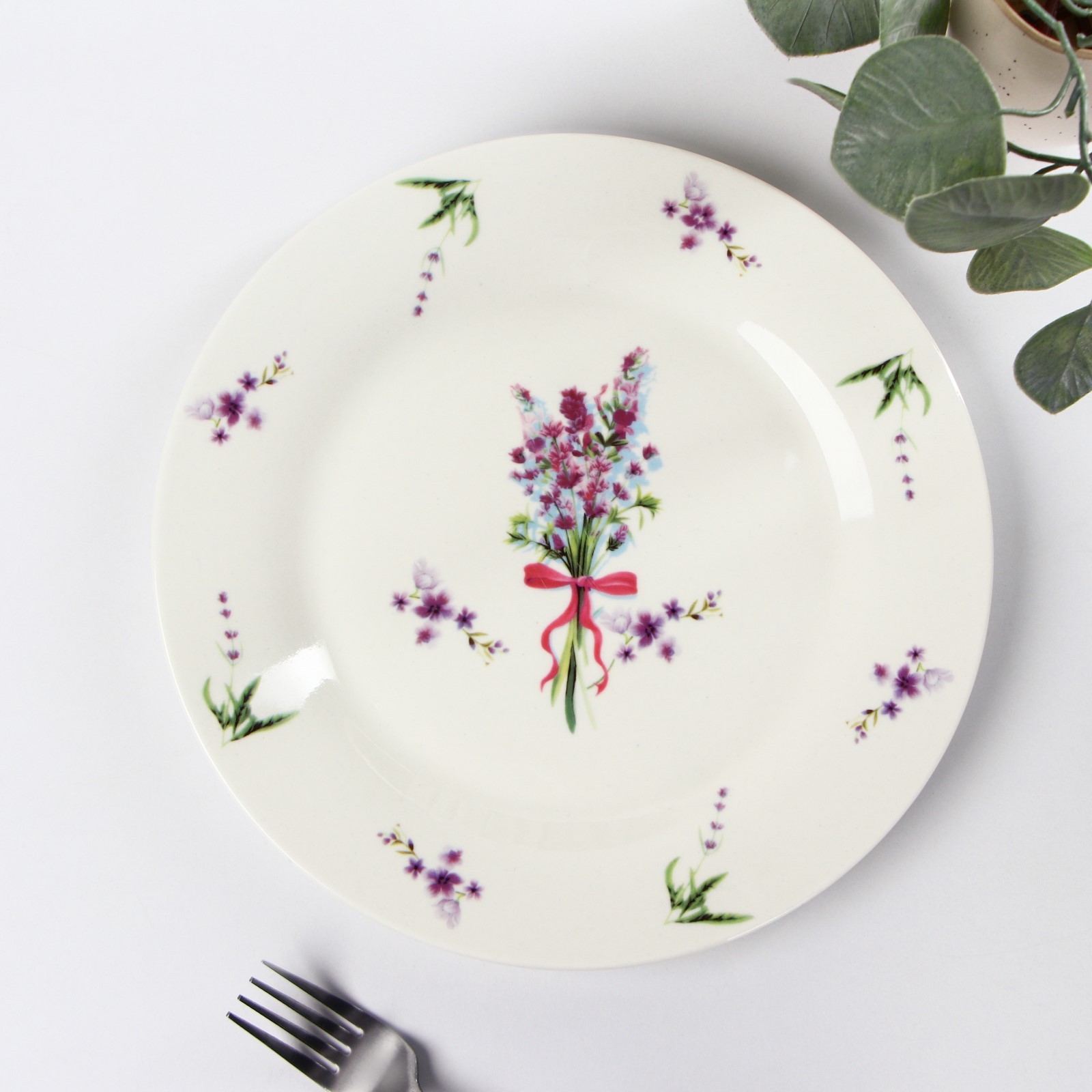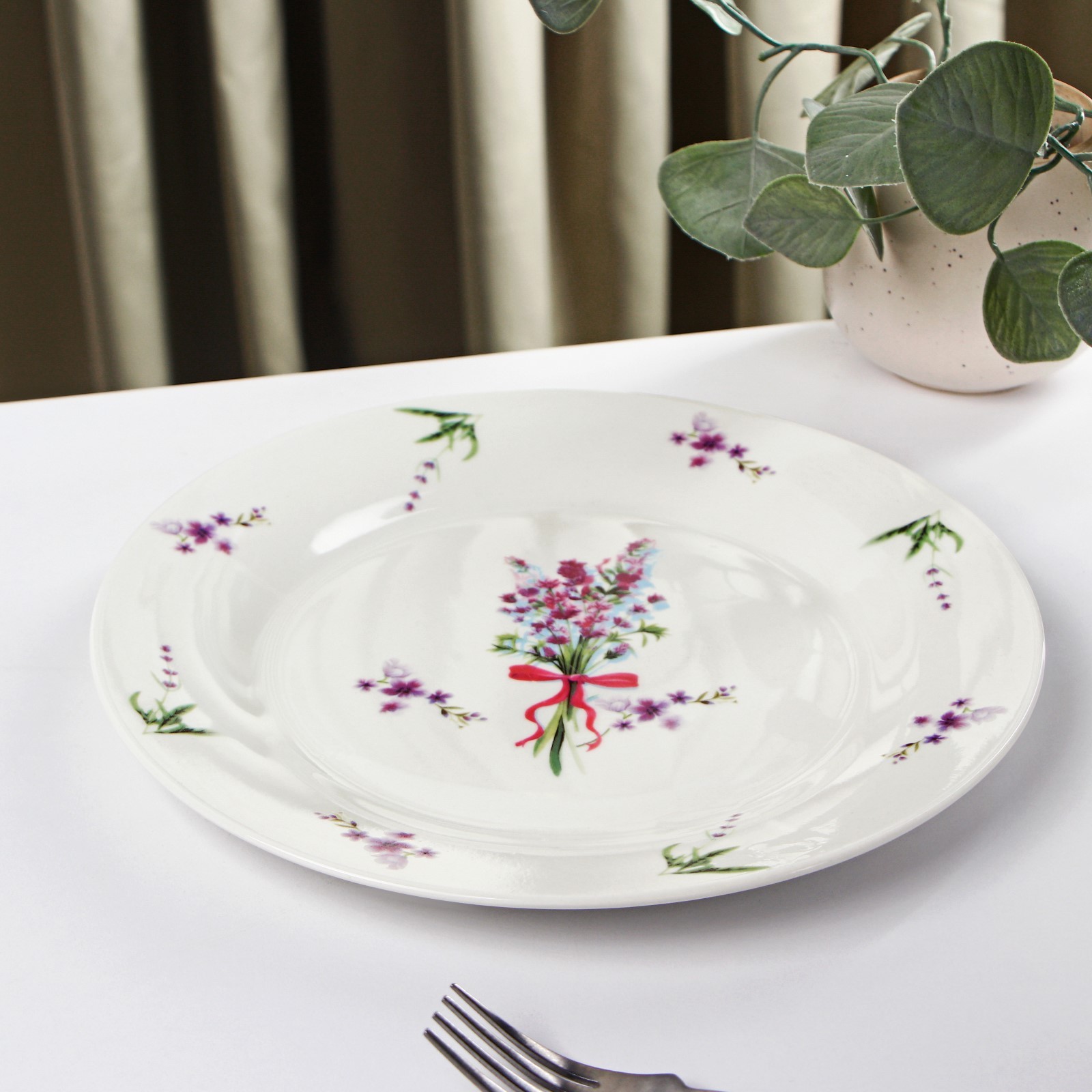 Тарелка фарфоровая обеденная доляна «лаванда», D=27 см, цвет белый