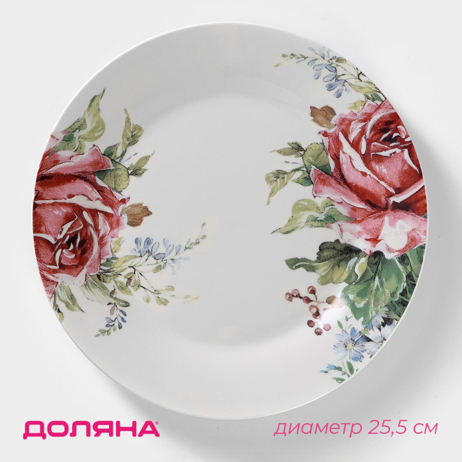 Тарелка фарфоровая обеденная доляна «роза», D=25,5 см, цвет белый
