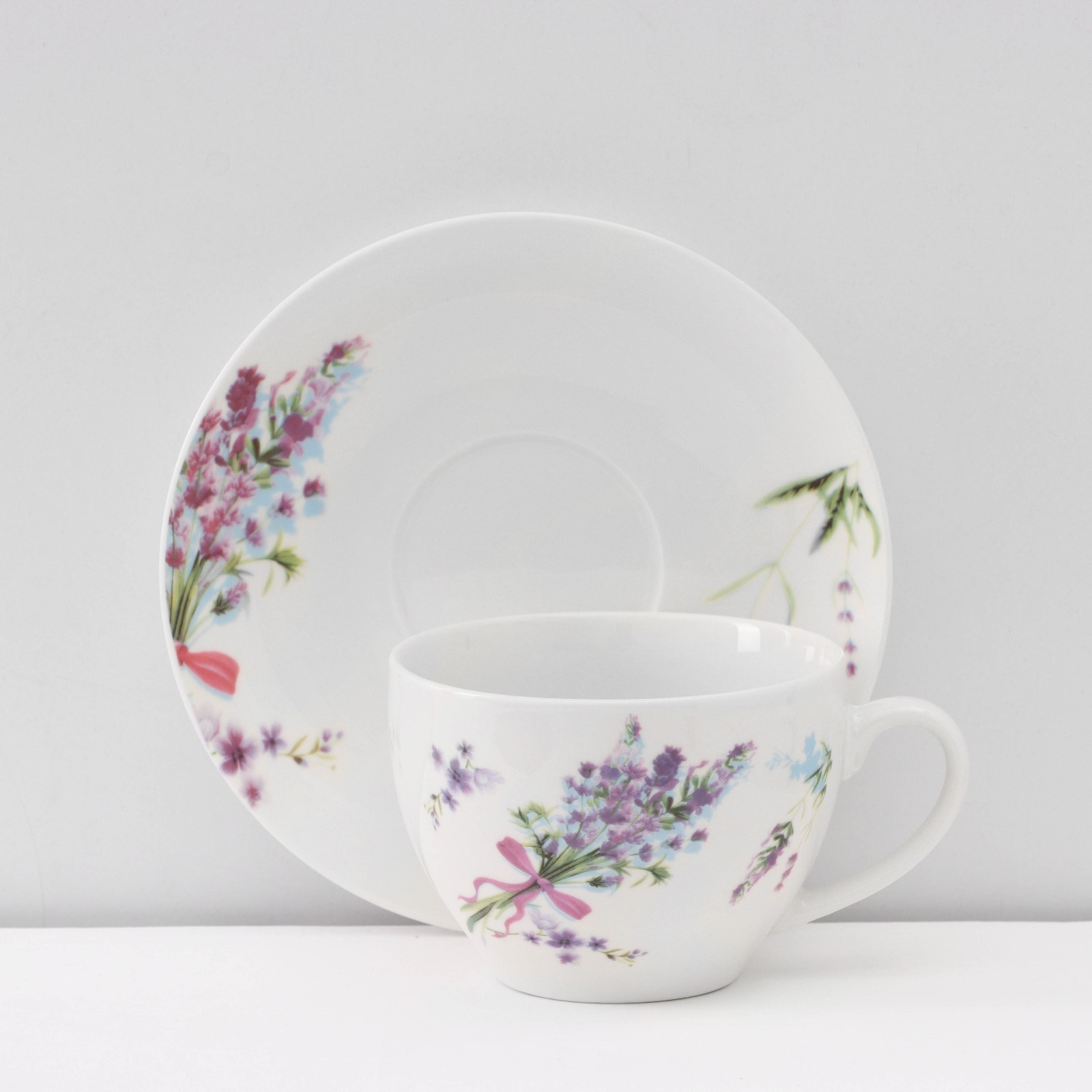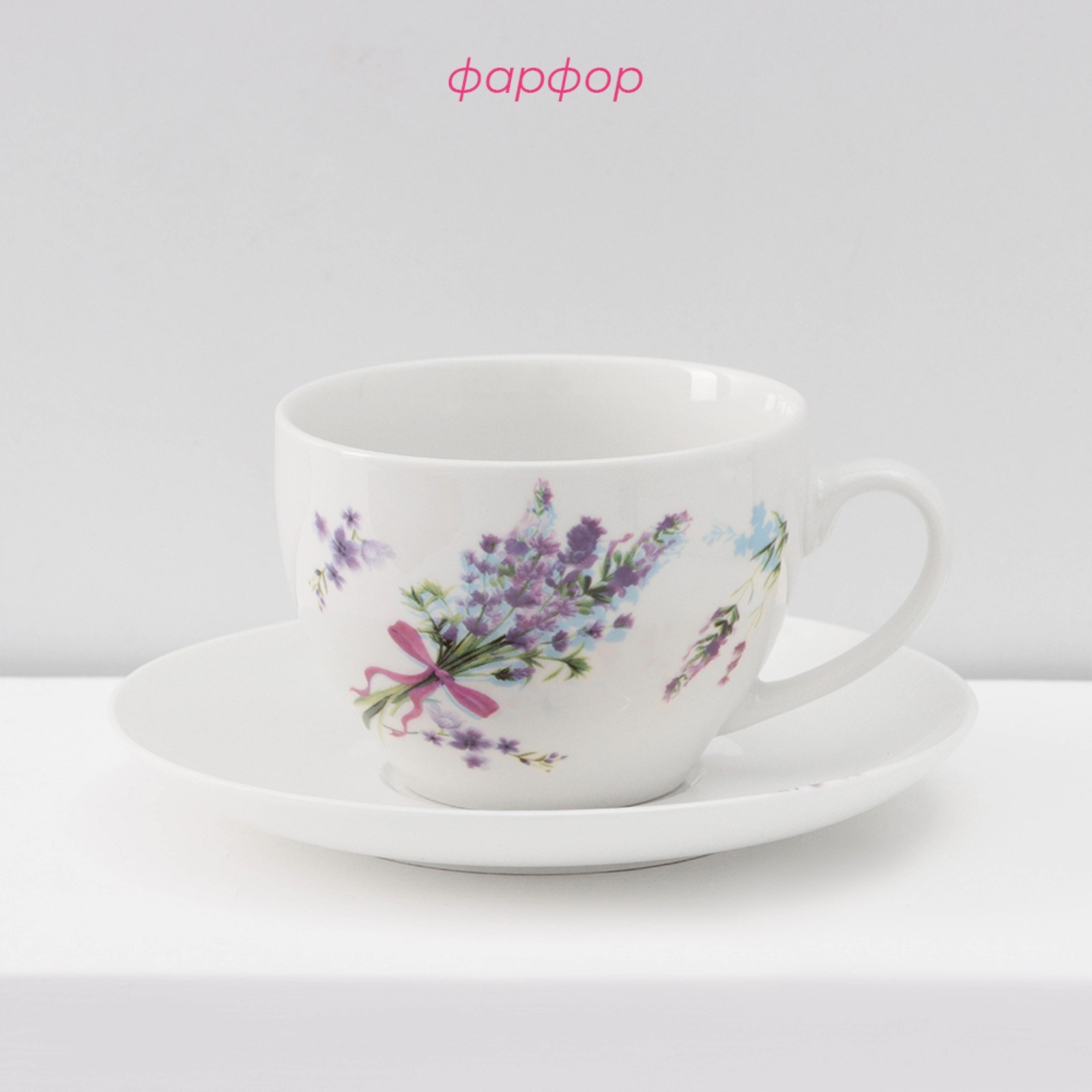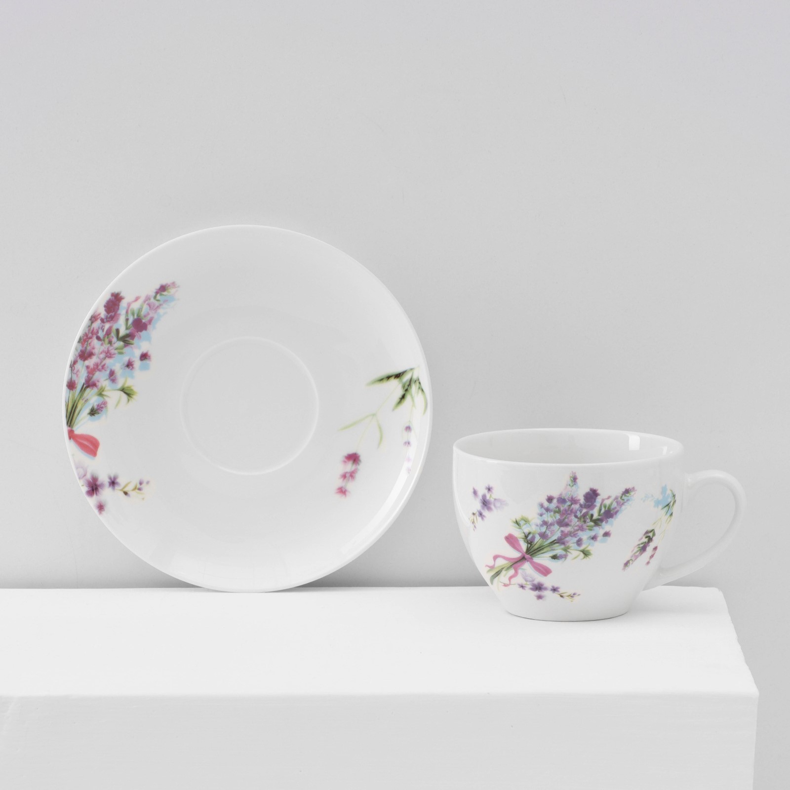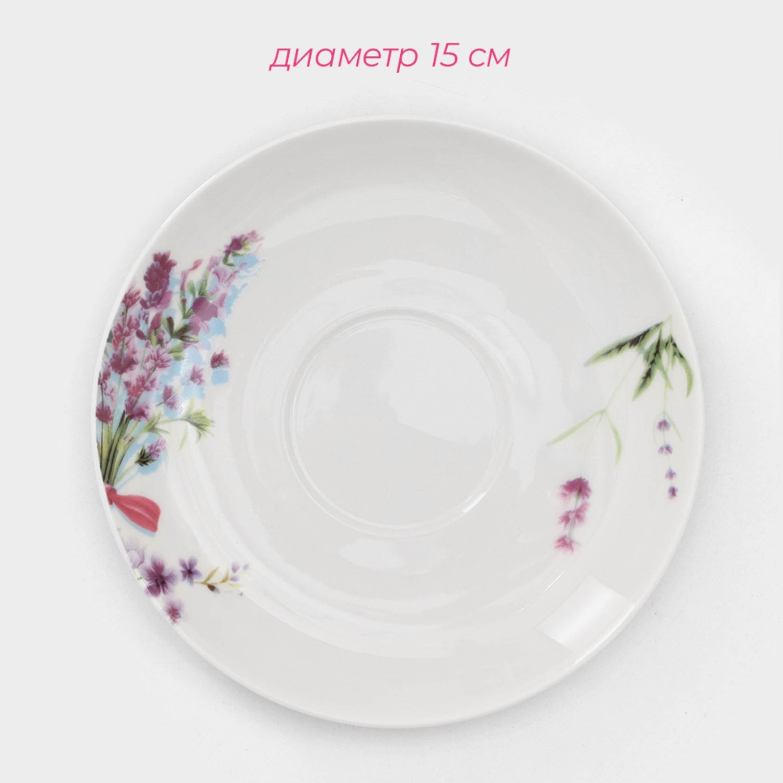 Сервиз фарфоровый чайный доляна «лаванда», 12 предметов: 6 чашек 250 мл, 6 блюдец D=15 см, цвет белый