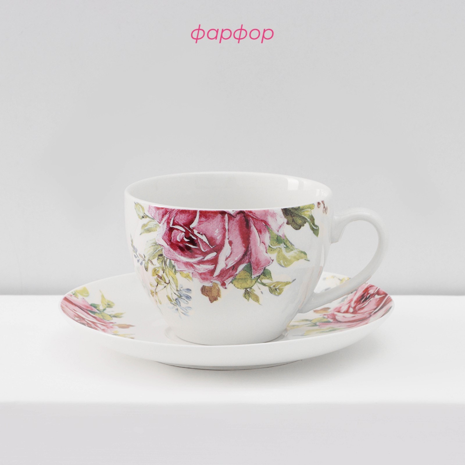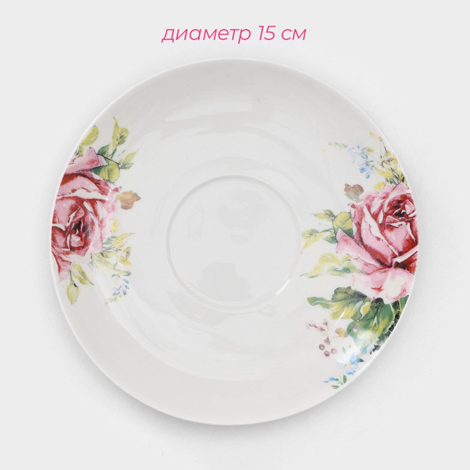Сервиз фарфоровый чайный доляна «роза», 12 предметов: чашка 250 мл, блюдце D=15 см