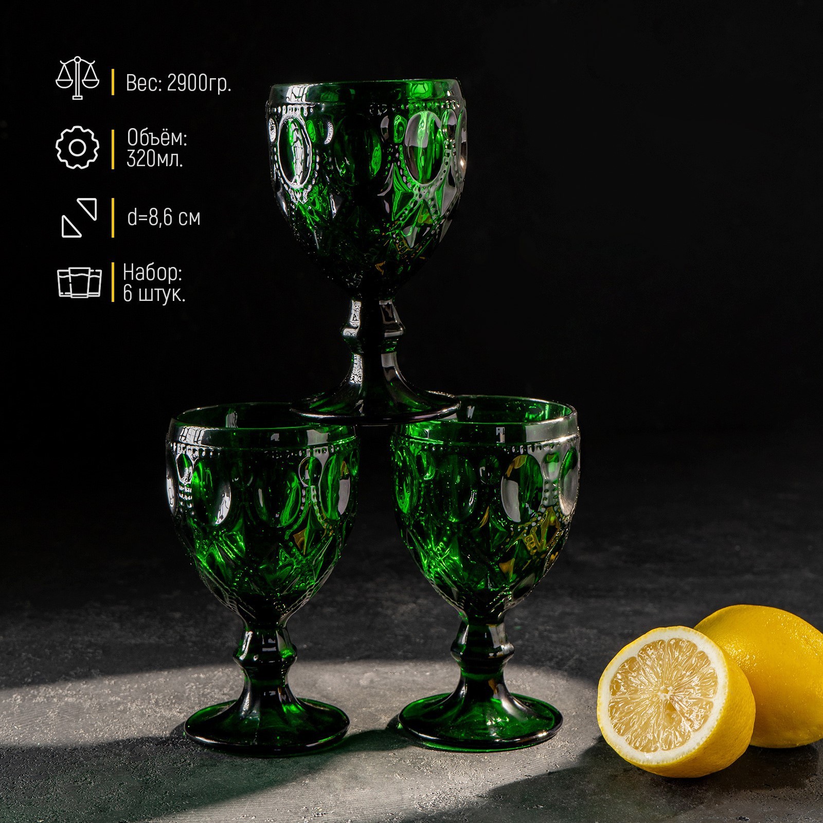 Набор бокалов стеклянных Magistro «варьете», 320 мл, 6 шт, цвет зелёный