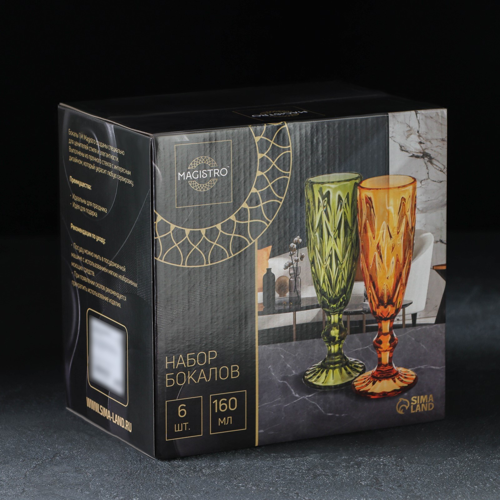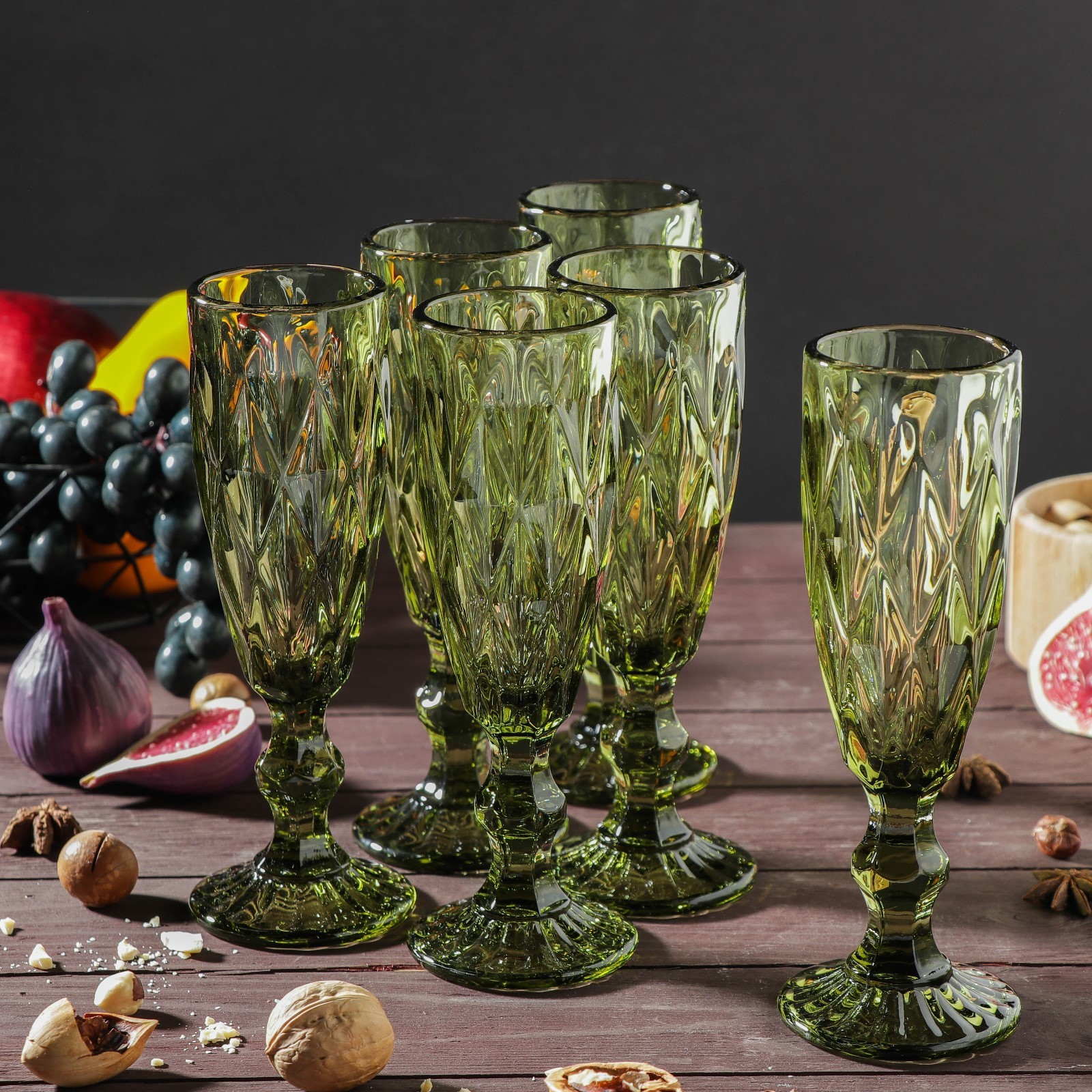 Набор бокалов стеклянных для шампанского Magistro «круиз», 160 мл, 7x20 см, 6 шт, цвет зелёный