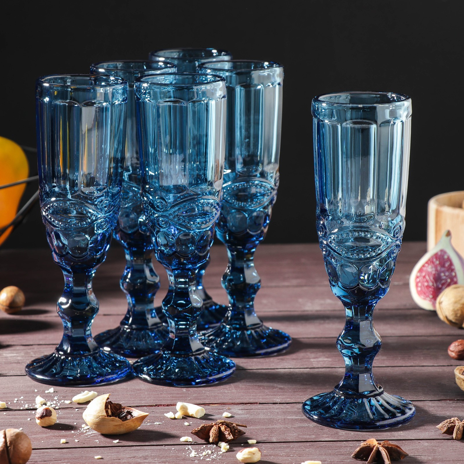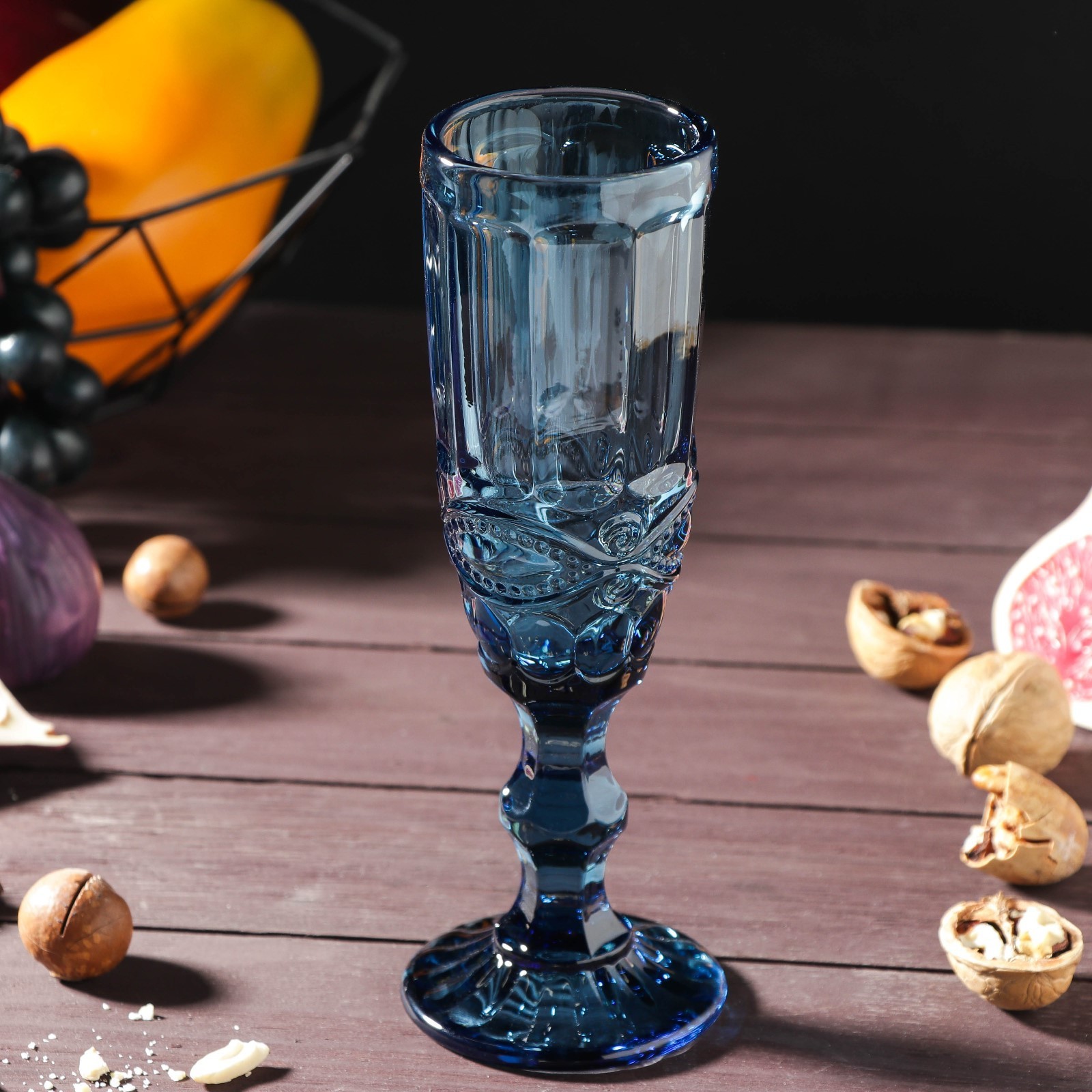 Набор бокалов стеклянных для шампанского Magistro «ла-манш», 160 мл, 7x20 см, 6 шт, цвет синий
