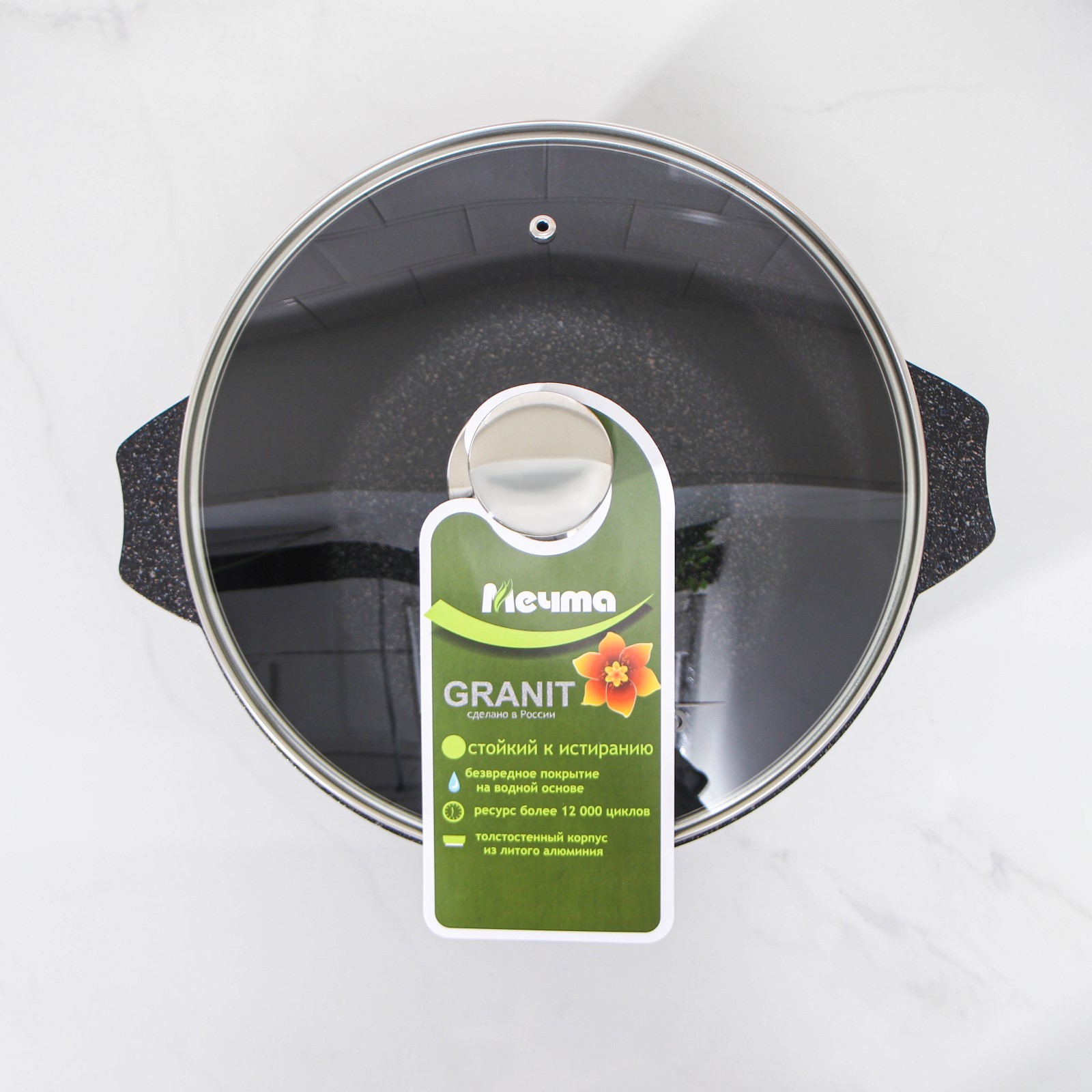 Кастрюля «гранит Star», 5 л, D=26 см, H=13 см, стеклянная крышка, антипригарное покрытие