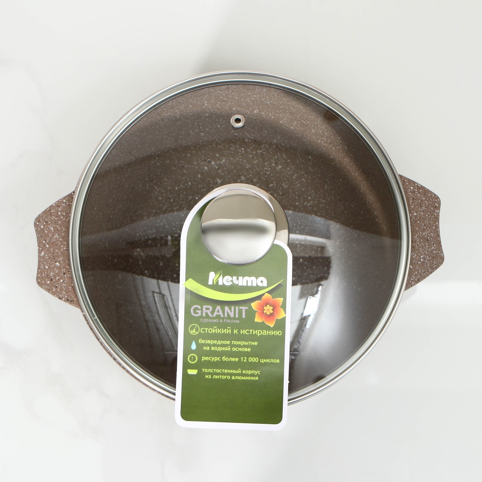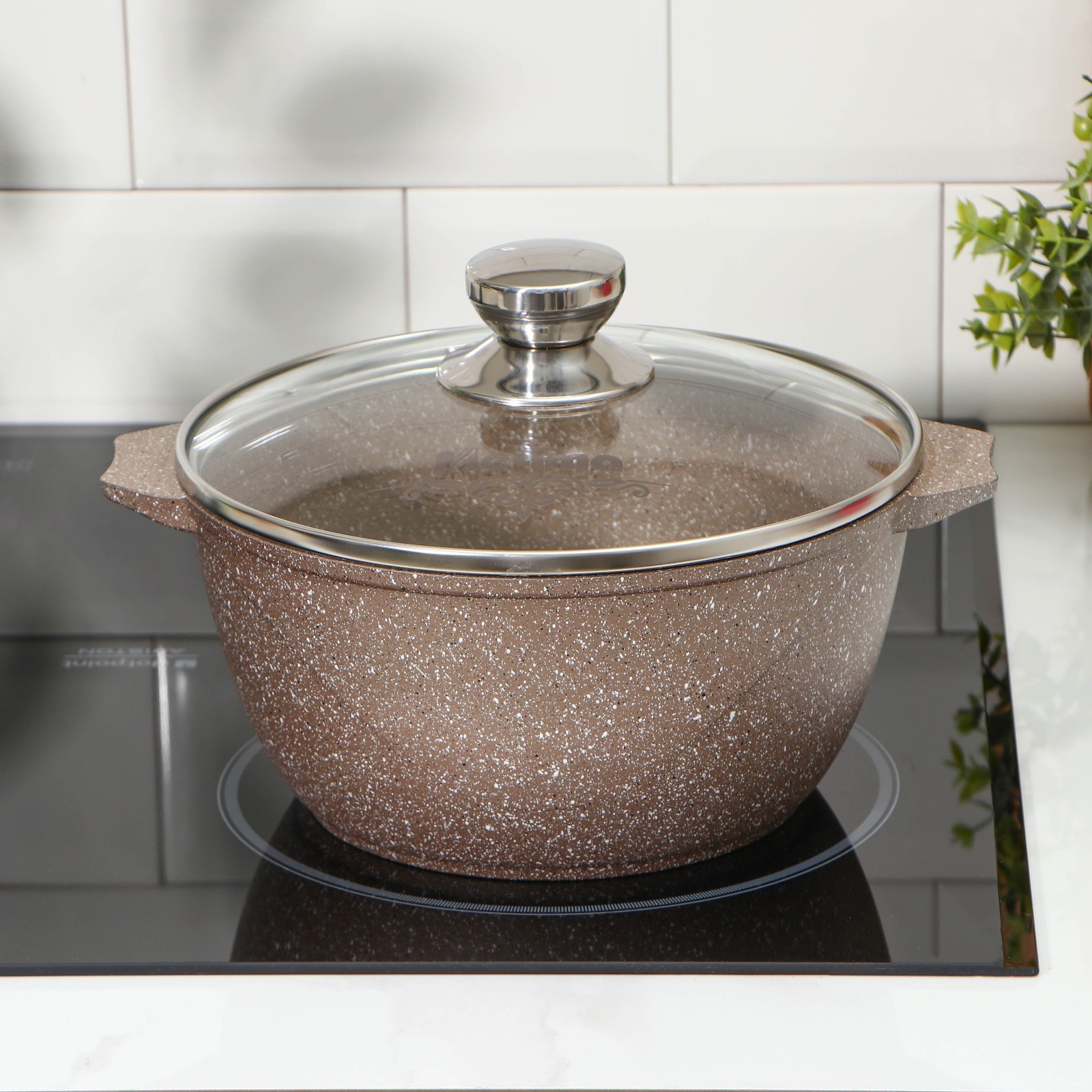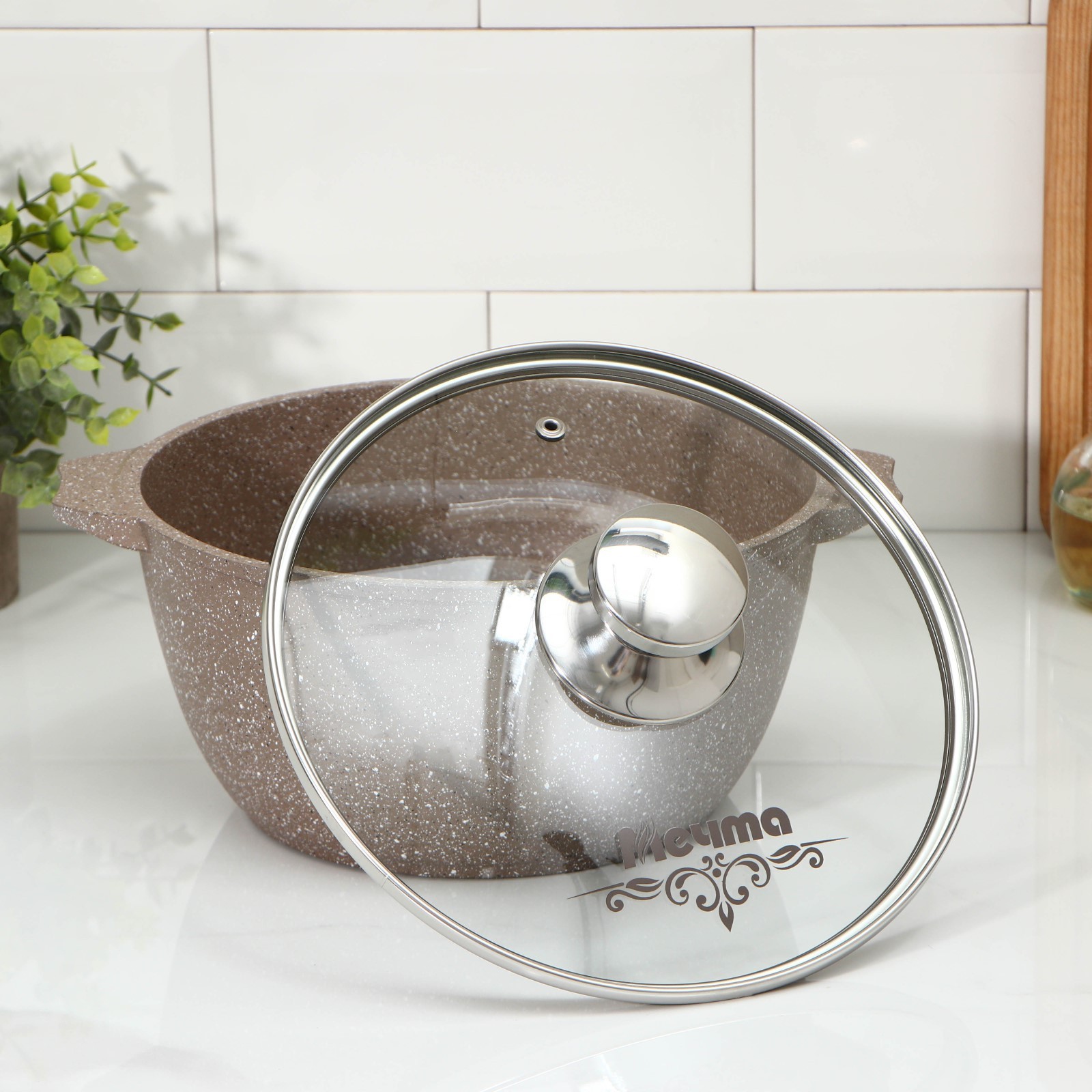 Кастрюля «гранит Brown», 3 л, D=24 см, H=19,5 см, стеклянная крышка, антипригарное покрытие, цвет коричневый