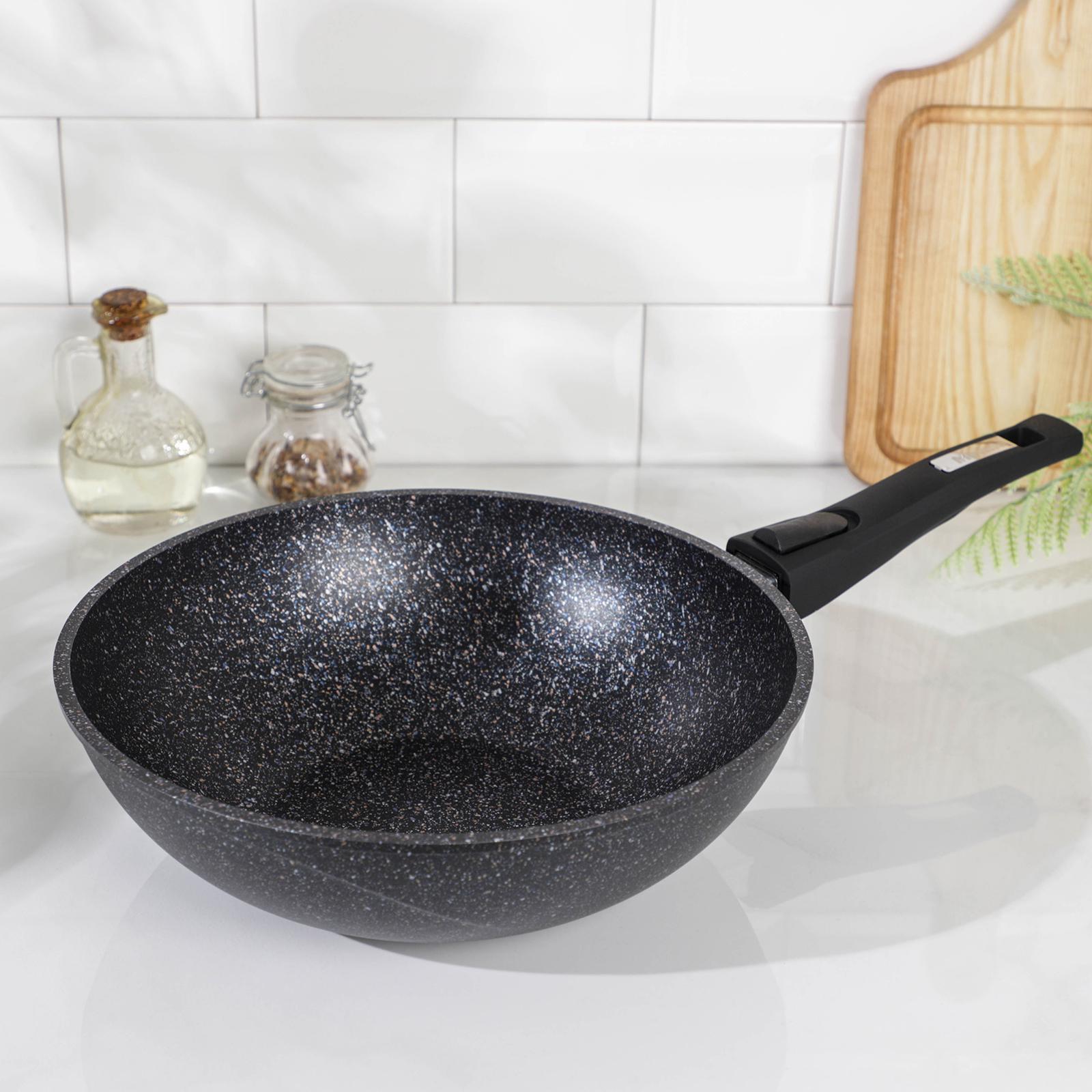 Сковорода «гранит Star», D=28 см, съёмная ручка, антипригарное покрытие, цвет чёрный
