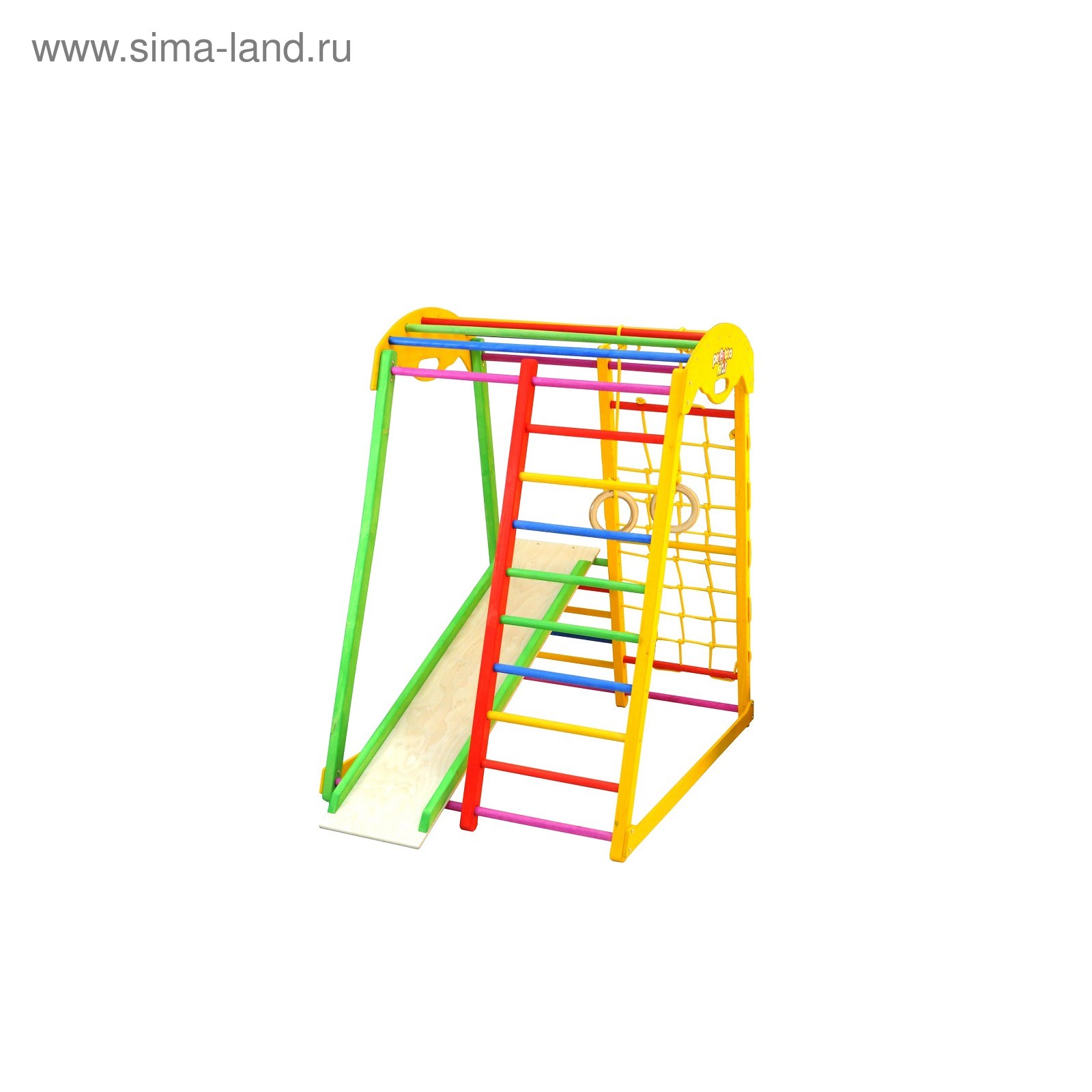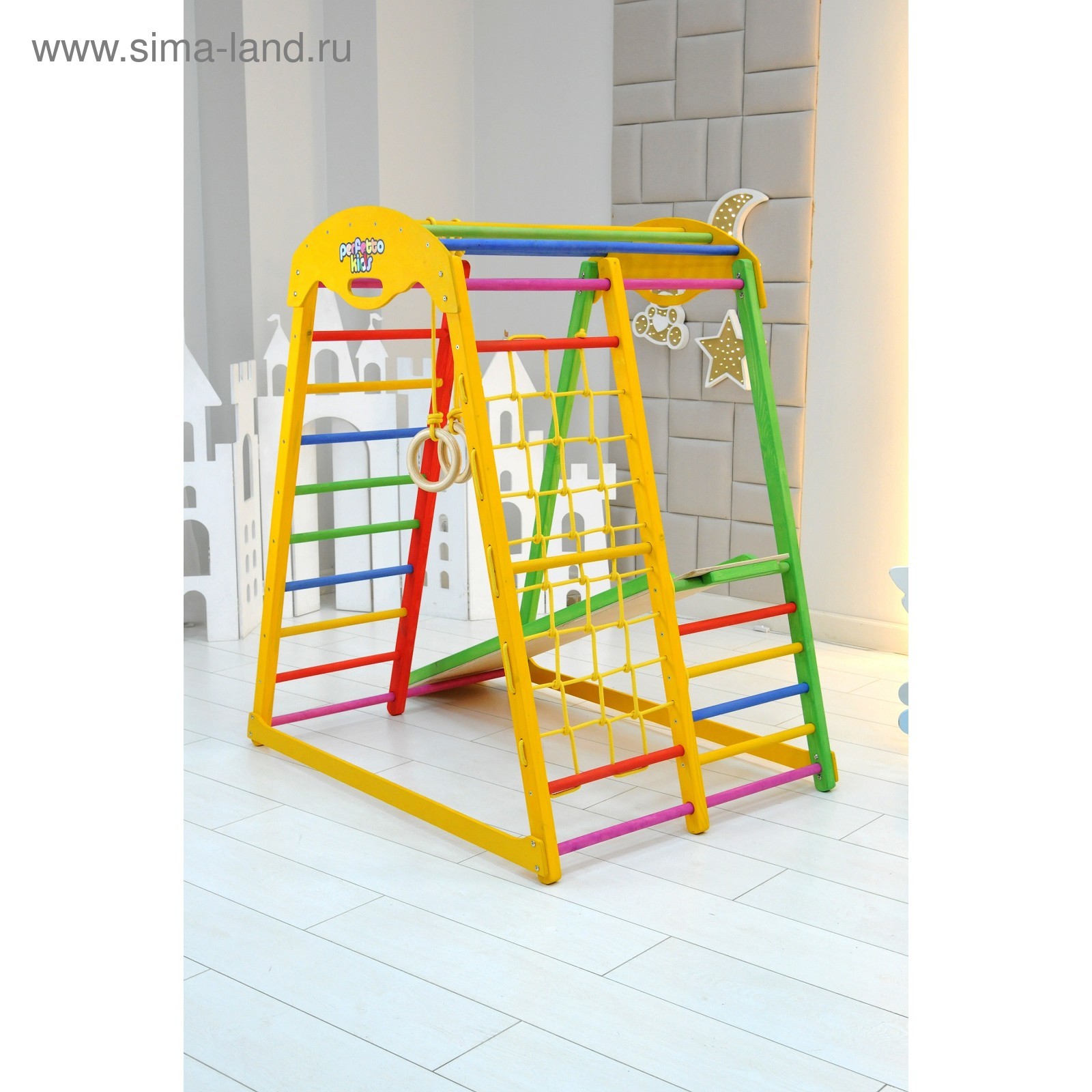 Детский спортивный комплекс perfetto kids farfalla, 1350 x 1000 x 1500 мм, цвет allegrо. Возраст: От 1 года Maксимальная нагрузка, кг: 60 Ширина комплекса, мм: 1000 Глубина комплекса, мм: 1350 Материал: Фанера Материал: Дерево Тип крепления: Нет крепления Комплектация: Горка Комплектация: Сетка Комплектация: Комплекс Комплектация: Кольца Высота комплекса, мм: 1500 Тип ступеней: Без покрытия  развернуть описание ▼