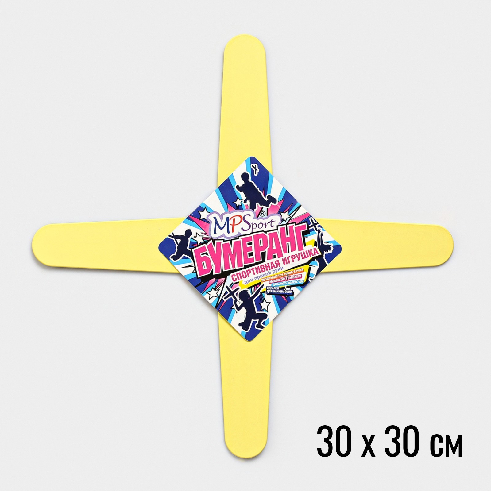 Бумеранг четырехлопастной, 30 х 30 см, моно, желтый