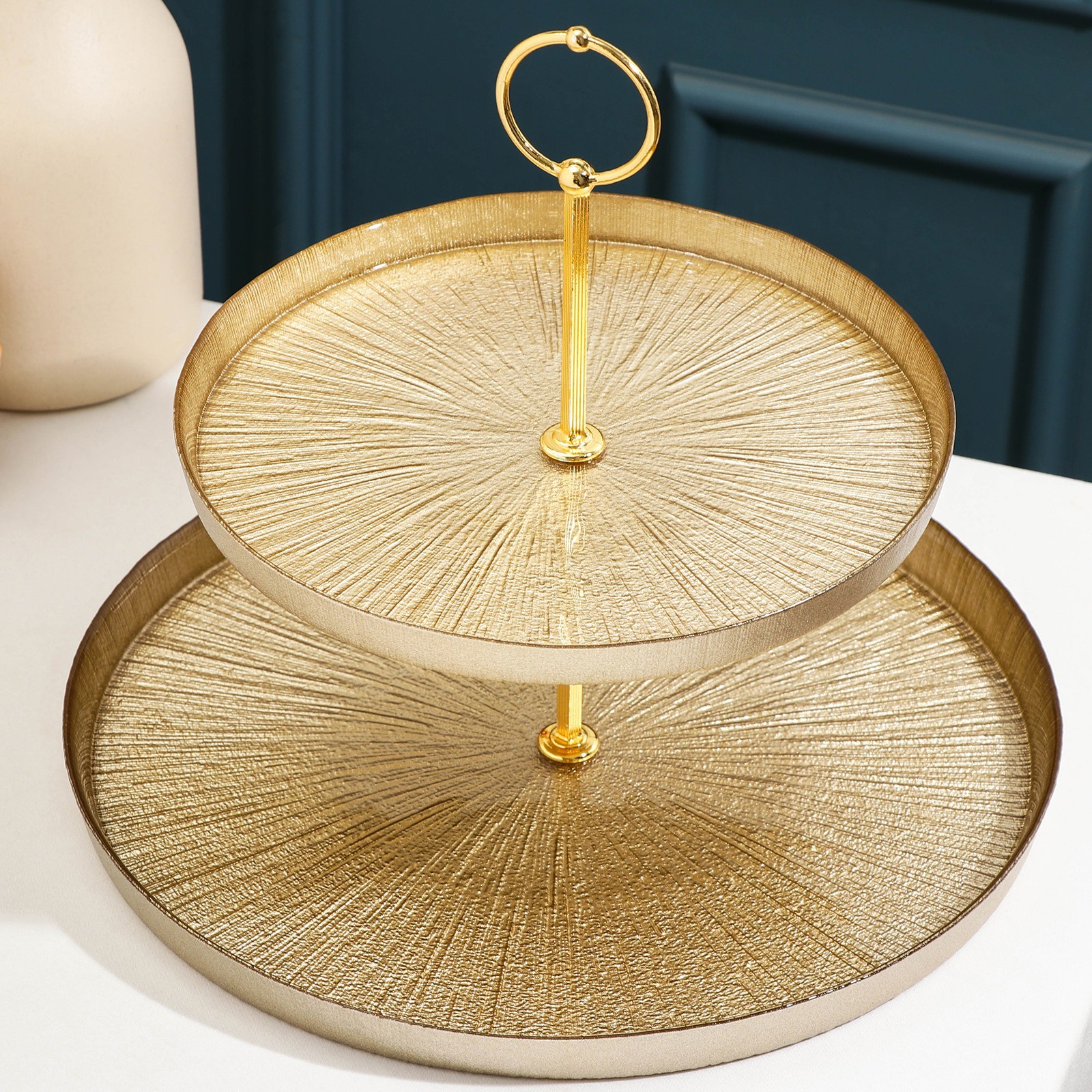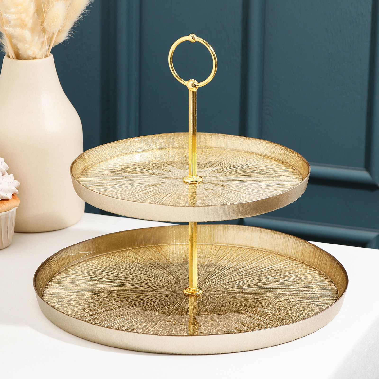 Блюдо 2-х ярусное «кувшинка», D=21/28 см, цвет золотой