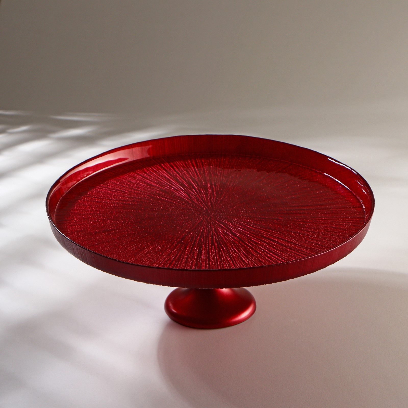 Блюдо сервировочное для торта «кувшинка», D=28 см, на ножке, цвет красный