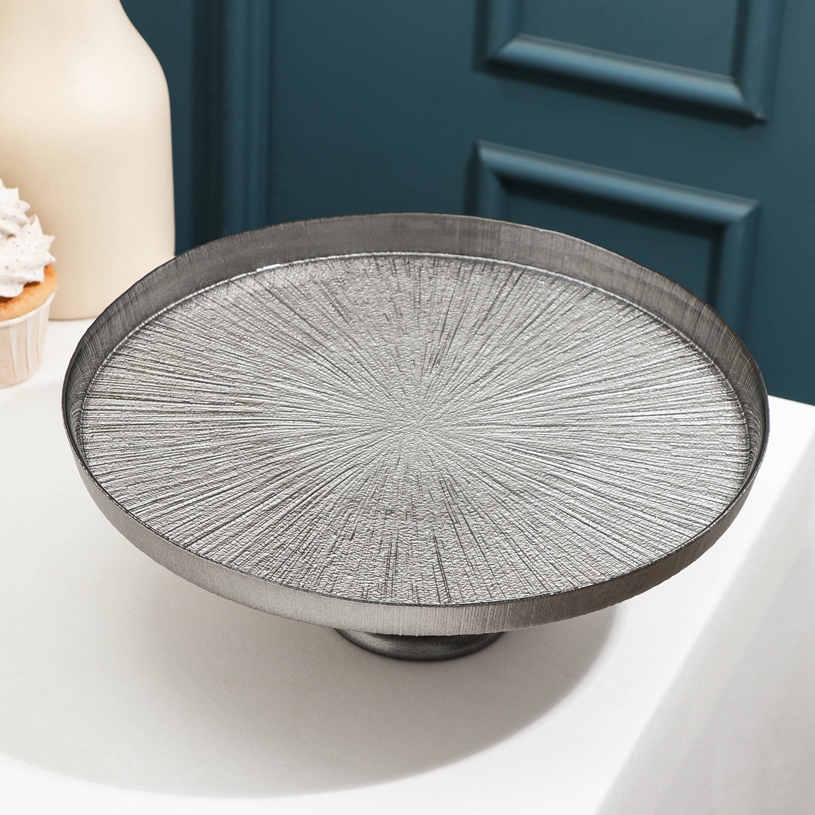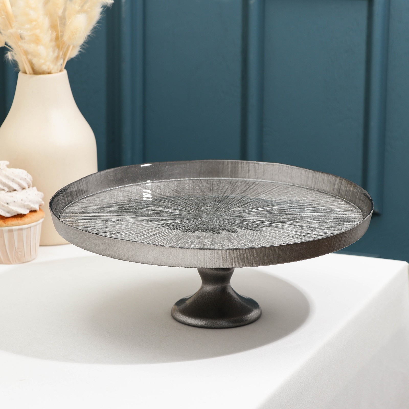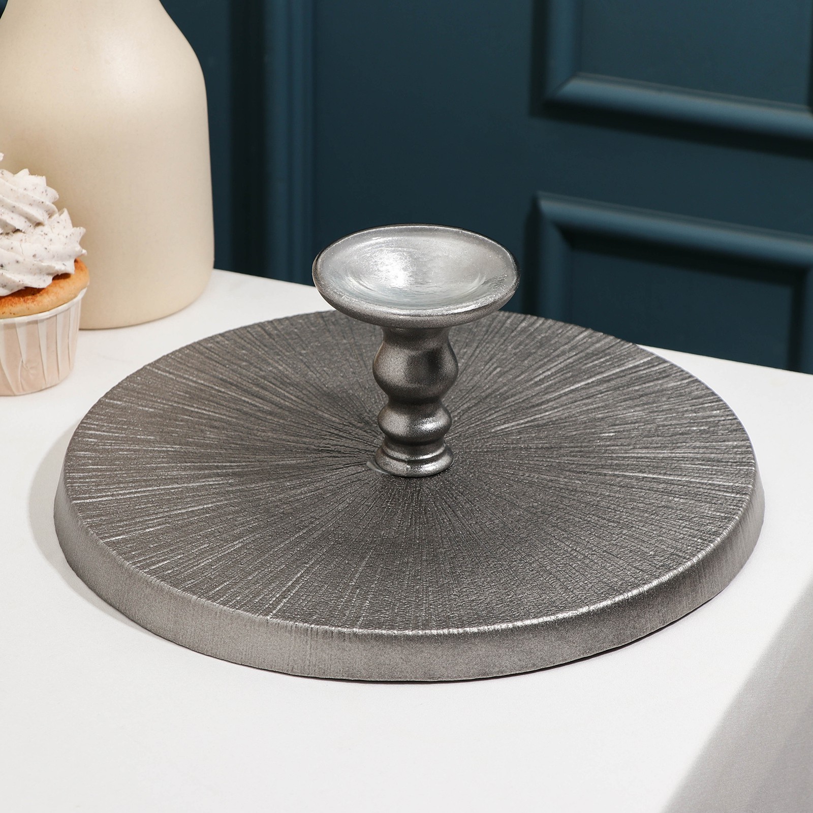 Блюдо сервировочное для торта «кувшинка», D=28 см, на ножке, цвет серебряный