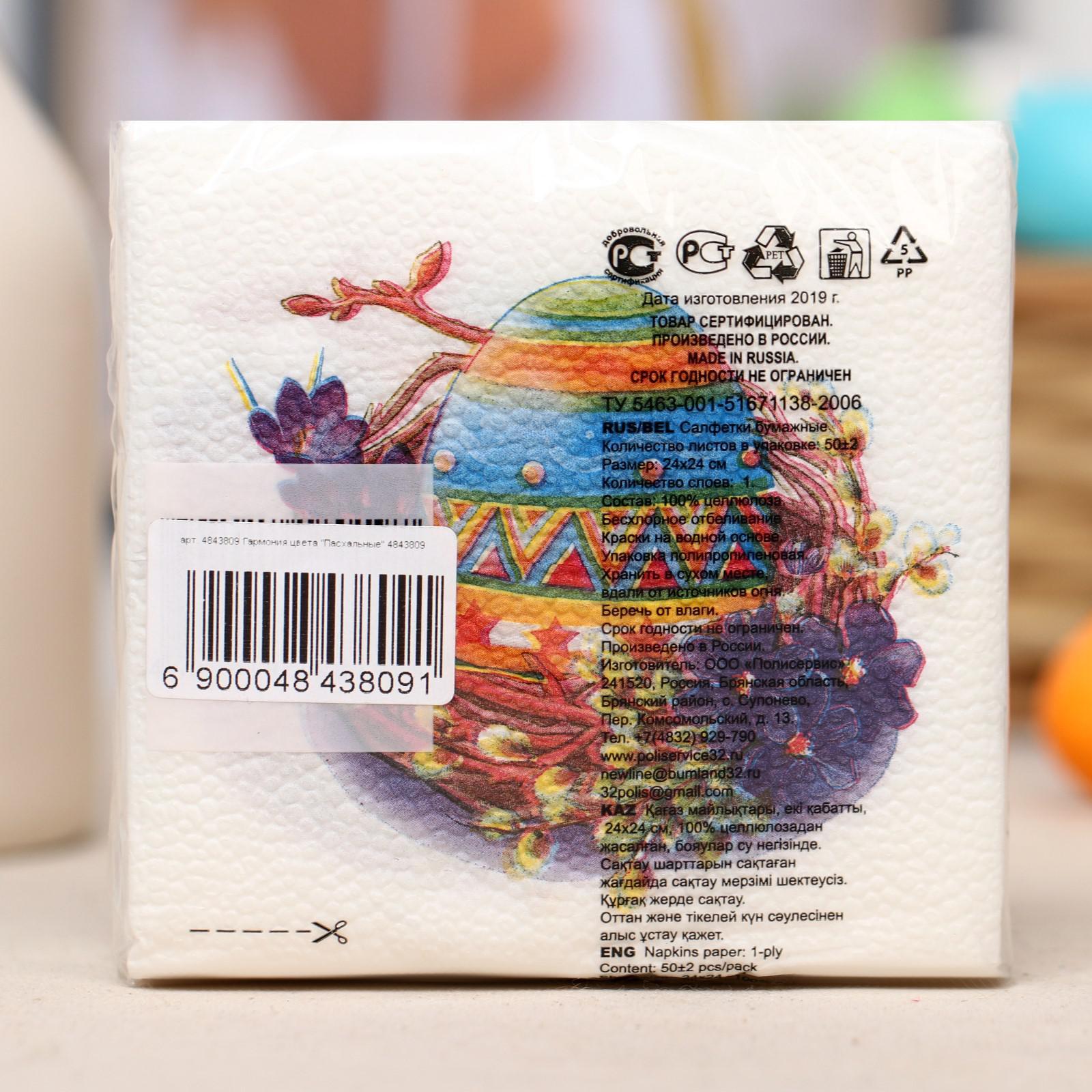 Салфетки бумажные «гармония цвета. пасхальные», 24*24 см, 50 шт.