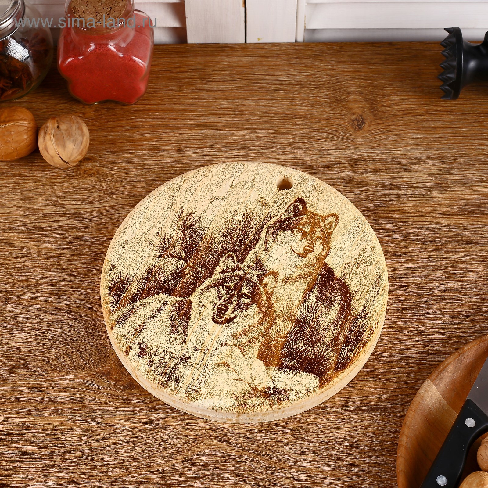 Доска из массива кедра «волки», круглая, 18 X 18 см №1