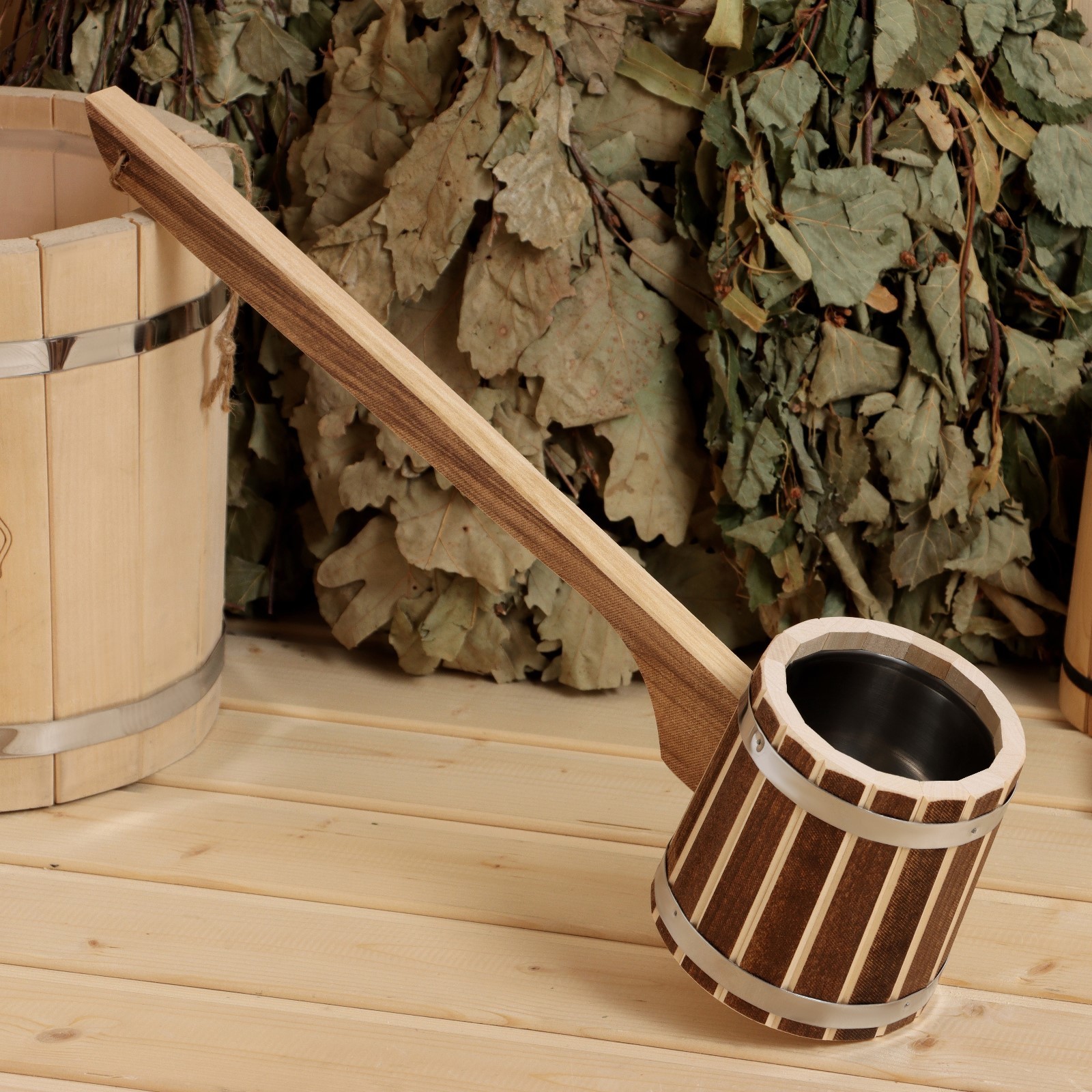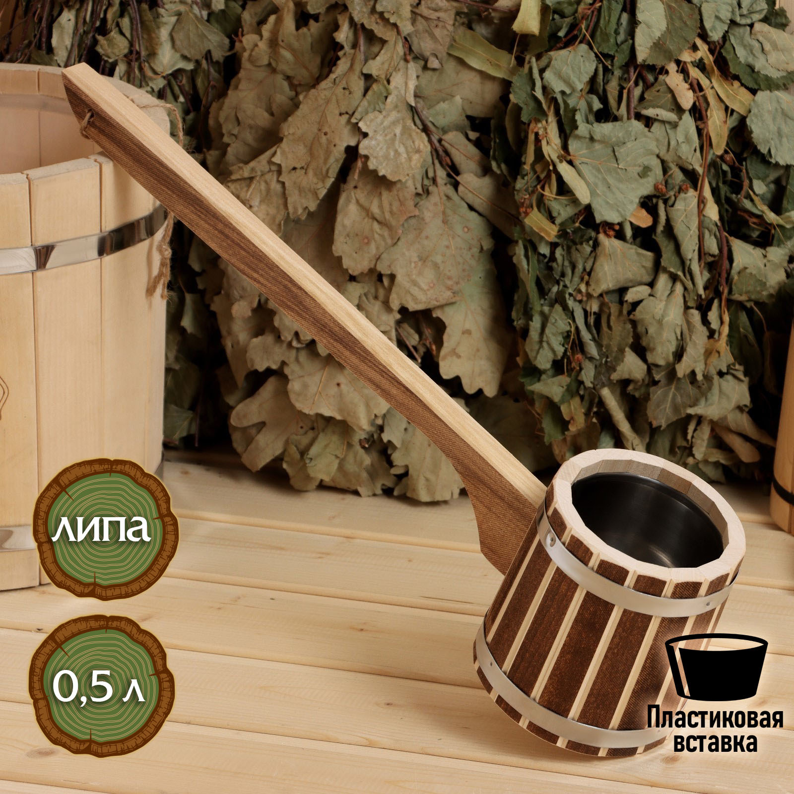 Ковш - черпак для бани и сауны «добрыня», 500 мл, липа, нержавеющие вставка и обруч, 54 см, «добропаровъ»