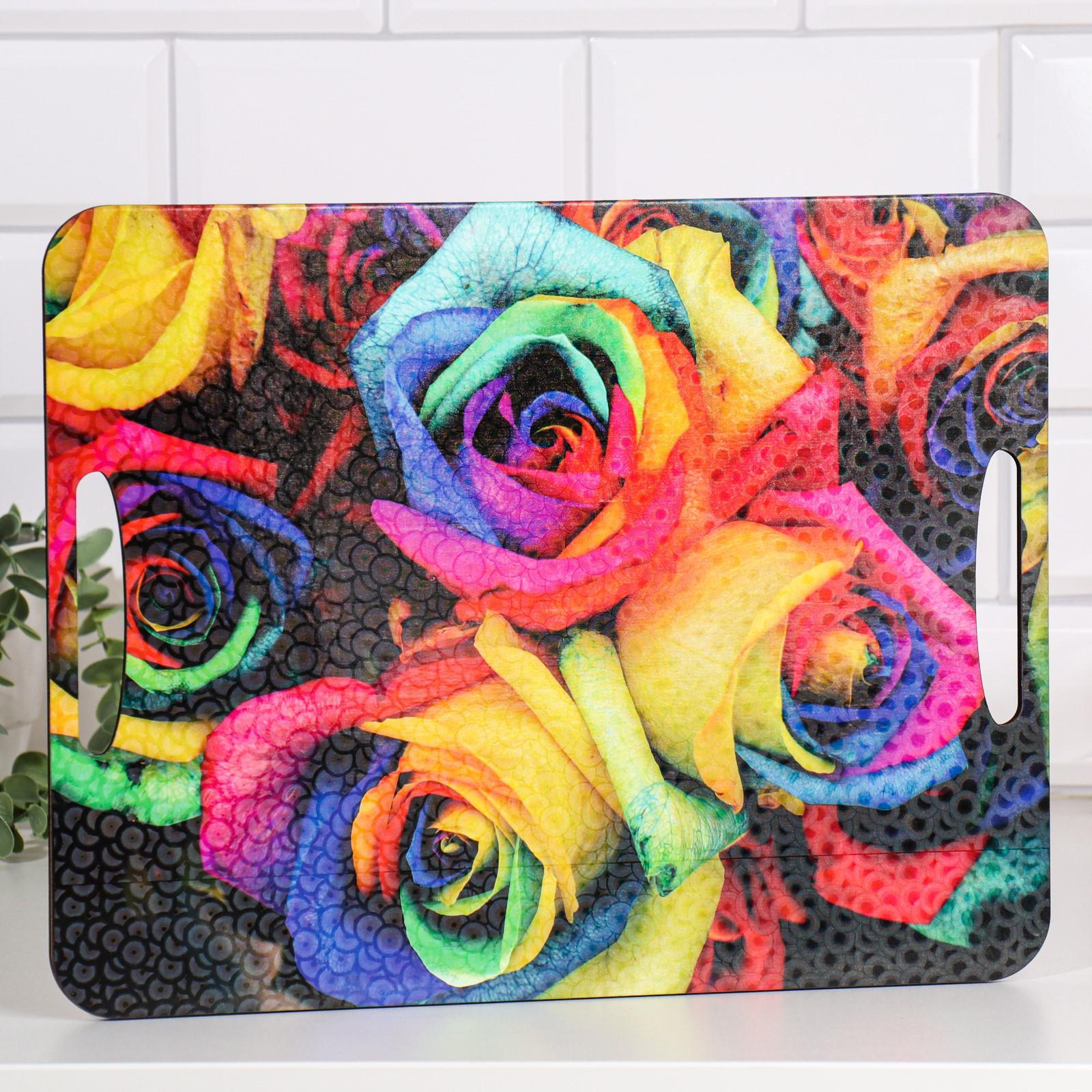 Разделочная доска-поднос "радужные розы" 36х28 см