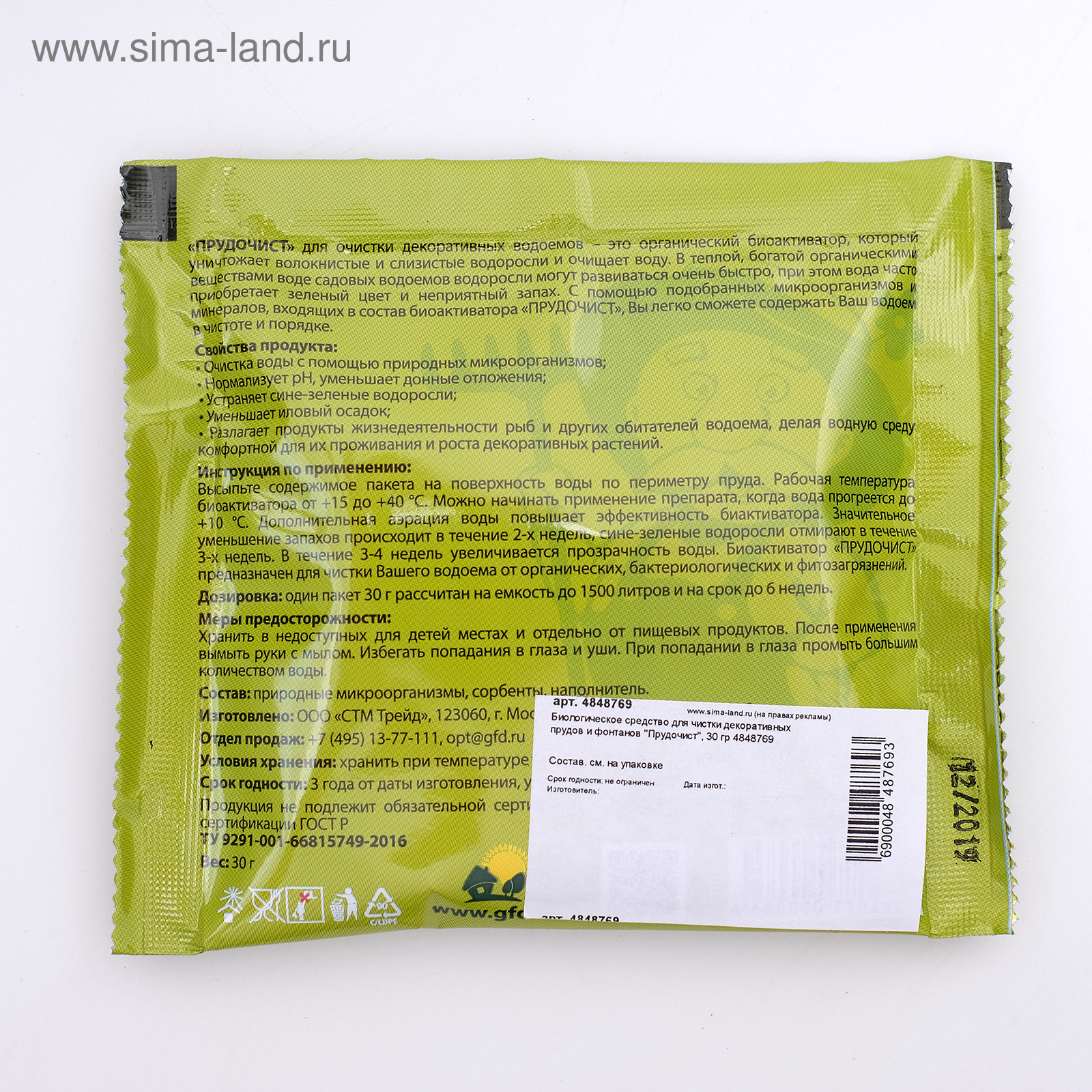 Биологическое средство для чистки декоративных прудов и фонтанов «прудочист», 30 г.