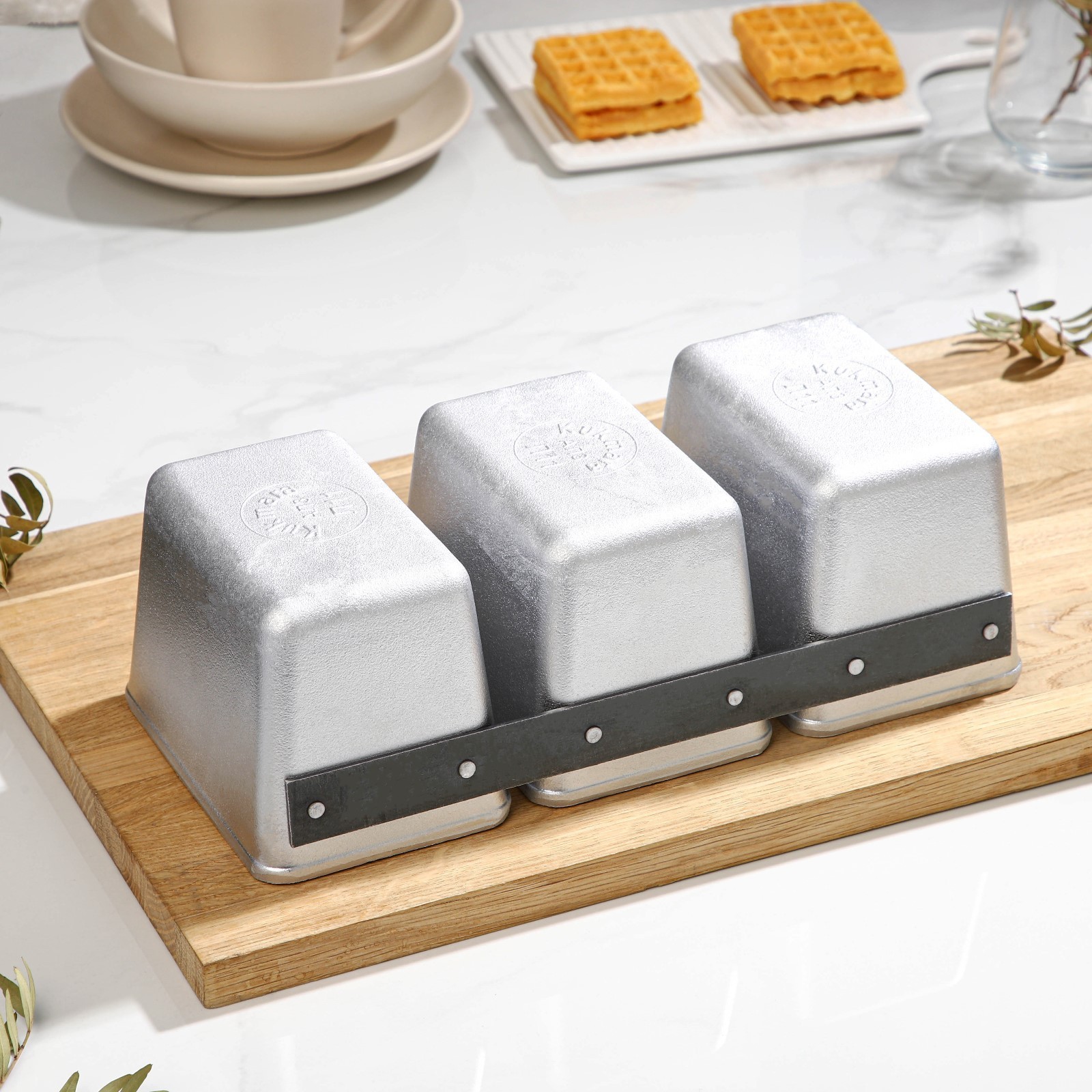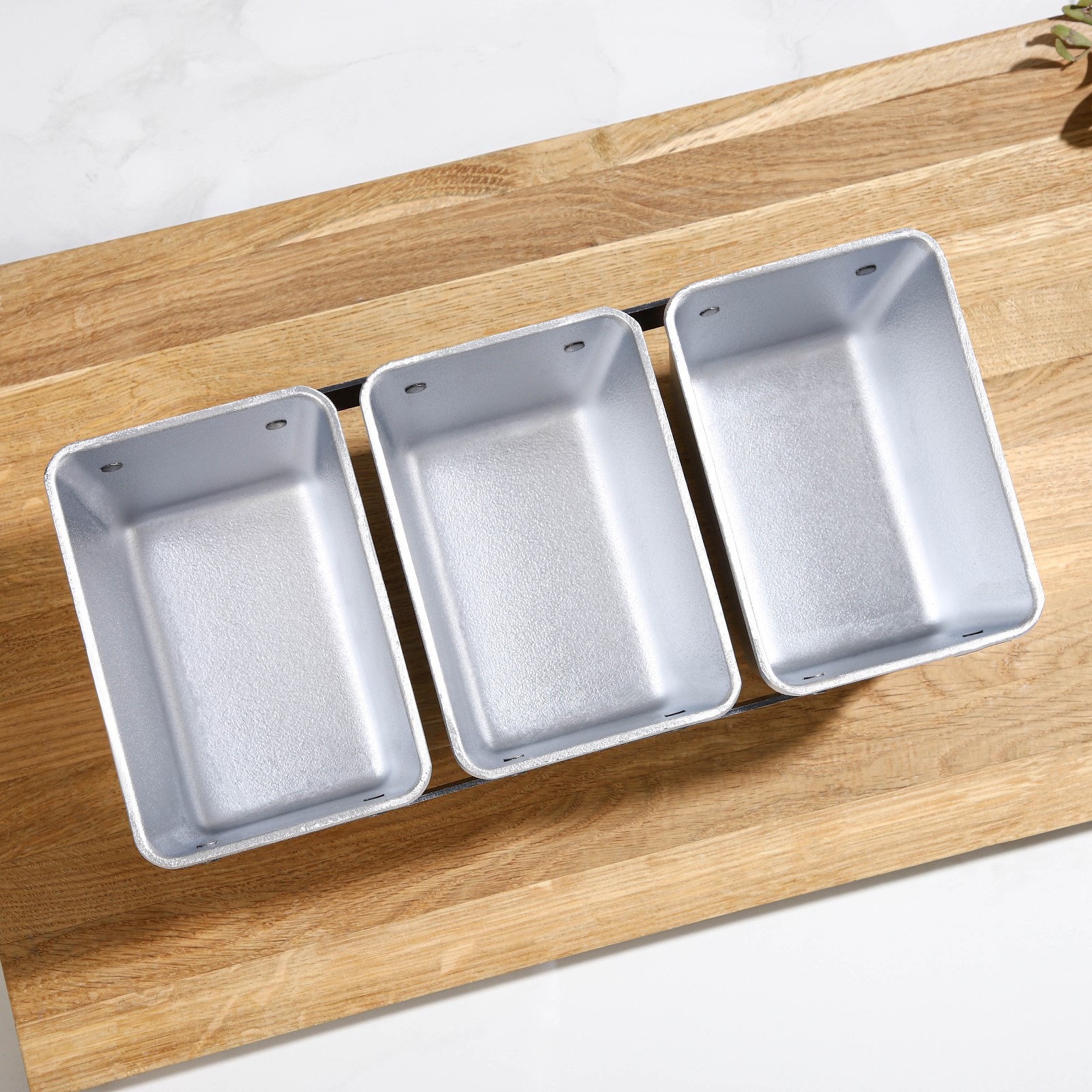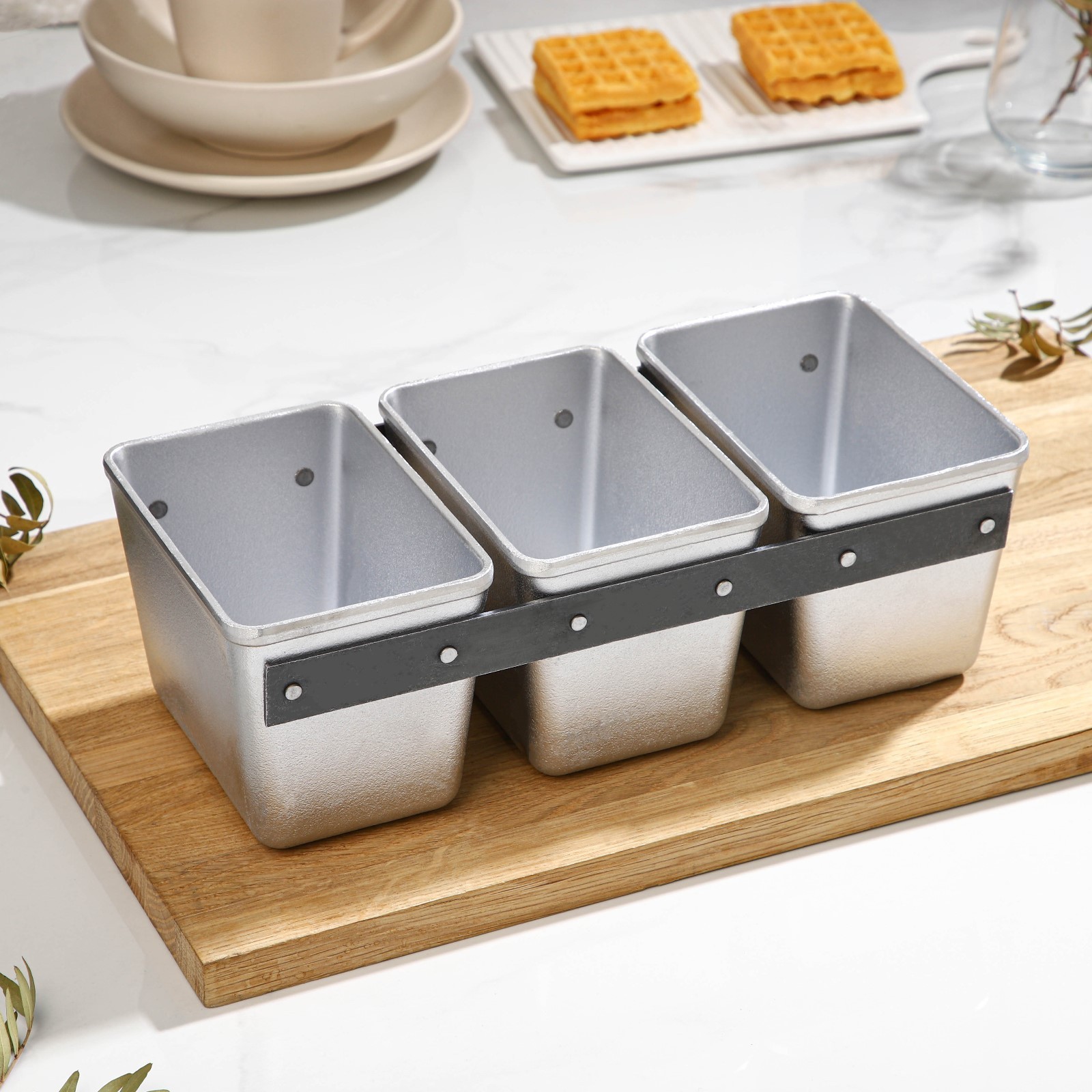 Хлебная форма, 30,5x14x10 см, 3-х секционная. Литая алюминиевая посуда без покрытия всегда была, есть и будет на пике популярности. Тому есть несколько причин: широта ассортимента, доступность и легкость ухода и использования. Посуда из литого алюминия может прослужить долгие годы, сохраняя свои теплораспределительные и теплоаккумулирующие свойства. Аромат свежеприготовленного хлеба в хлебной форме Kukmara возвращает в родной дом и окутывает любовью близких нам людей и позволяет насладиться запахом и вкусом хрустящего домашнего хлеба. Корпус формы Kukmara выполнен из литого алюминия, который обеспечивает быстрый нагрев и равномерное распределение тепла по всей поверхности. Благодаря этому корочка получается румяная, а мякиш воздушный, хорошо пропеченный. Лаконичная форма оснащена небольшими бортиками для более комфортного вынимания из духового шкафа. Хлебная форма Kukmara подходит не только для домашнего использования, но и для автоматизированных комплексов. Хлебная форма удобна, легко очищается, с ней приятно работать. Преимущество хлебной формы Kukmara:значительная толщина стенок и дна исключает деформацию корпуса хлебной формы;долговечность;идеальное распределение тепла по всей поверхности посуды, длительное сохранение тепла;дно толщиной до 6 мм;экологически безопасная;подходят для печей и духовых шкафов любого типа. Хлебная форма из толстостенного алюминия – идеальное сочетание надежности и практичности. Процесс приготовления еды приятнее вместе с посудой Kukmara! Цвет: Серебристый Форма: Прямоугольная parts count: 0 Фасовка, шт.: 1 Количество ячеек: 3 tnved: 7615101000 Крышка: Нет Материал: Алюминий Тип покрытия: Без покрытия Ячейки: Да Тип формы: Для хлеба Разъёмная форма: Нет Температурное ограничение: Нет Можно мыть в посудомоечной машине: Нет Форма: Прямоугольник  развернуть описание ▼