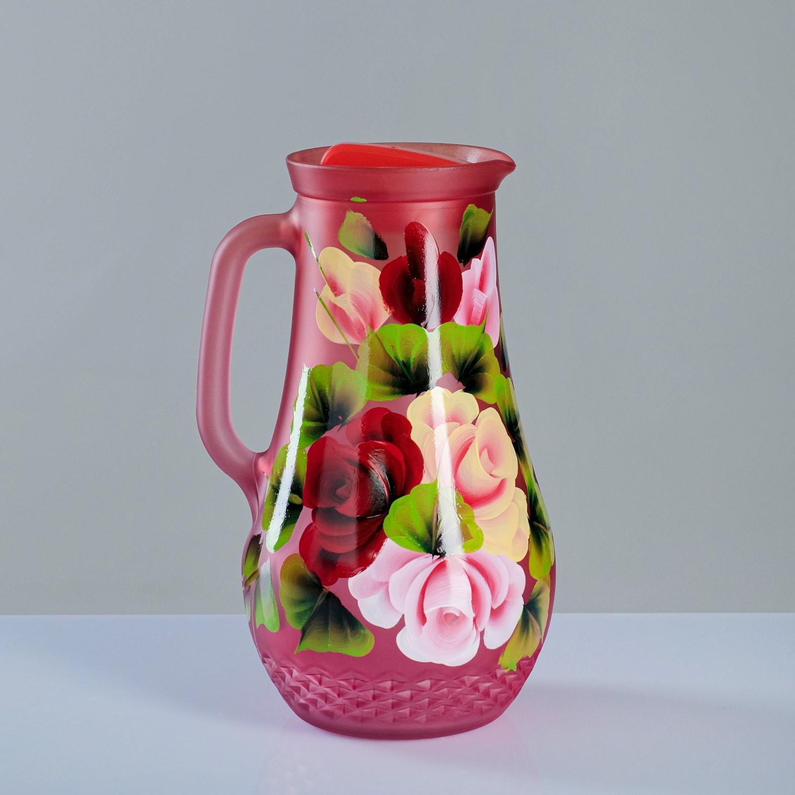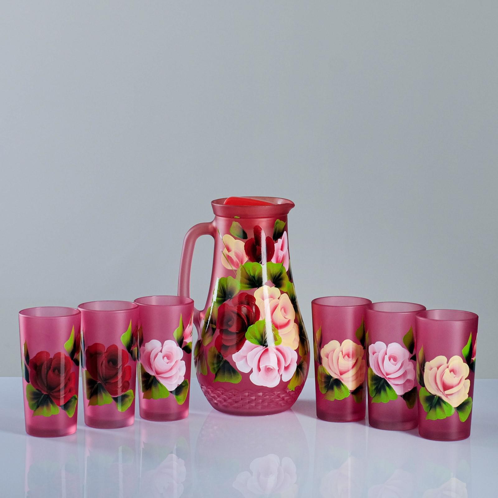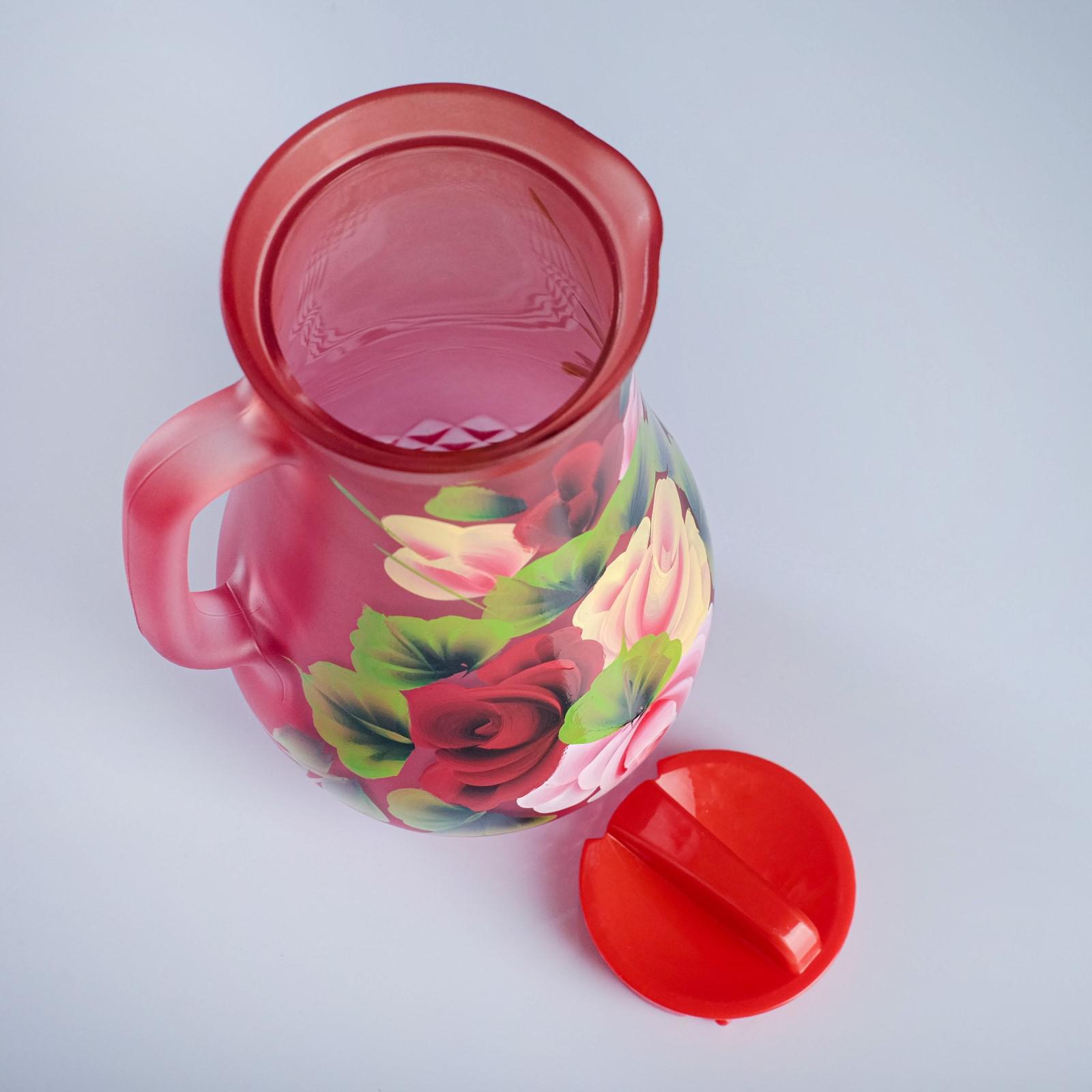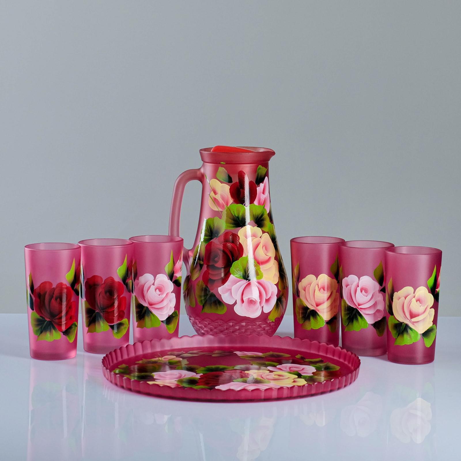 Набор для сока с подносом "жостово" художественная роспись, 6 стаканов 1250/200 мл, красный