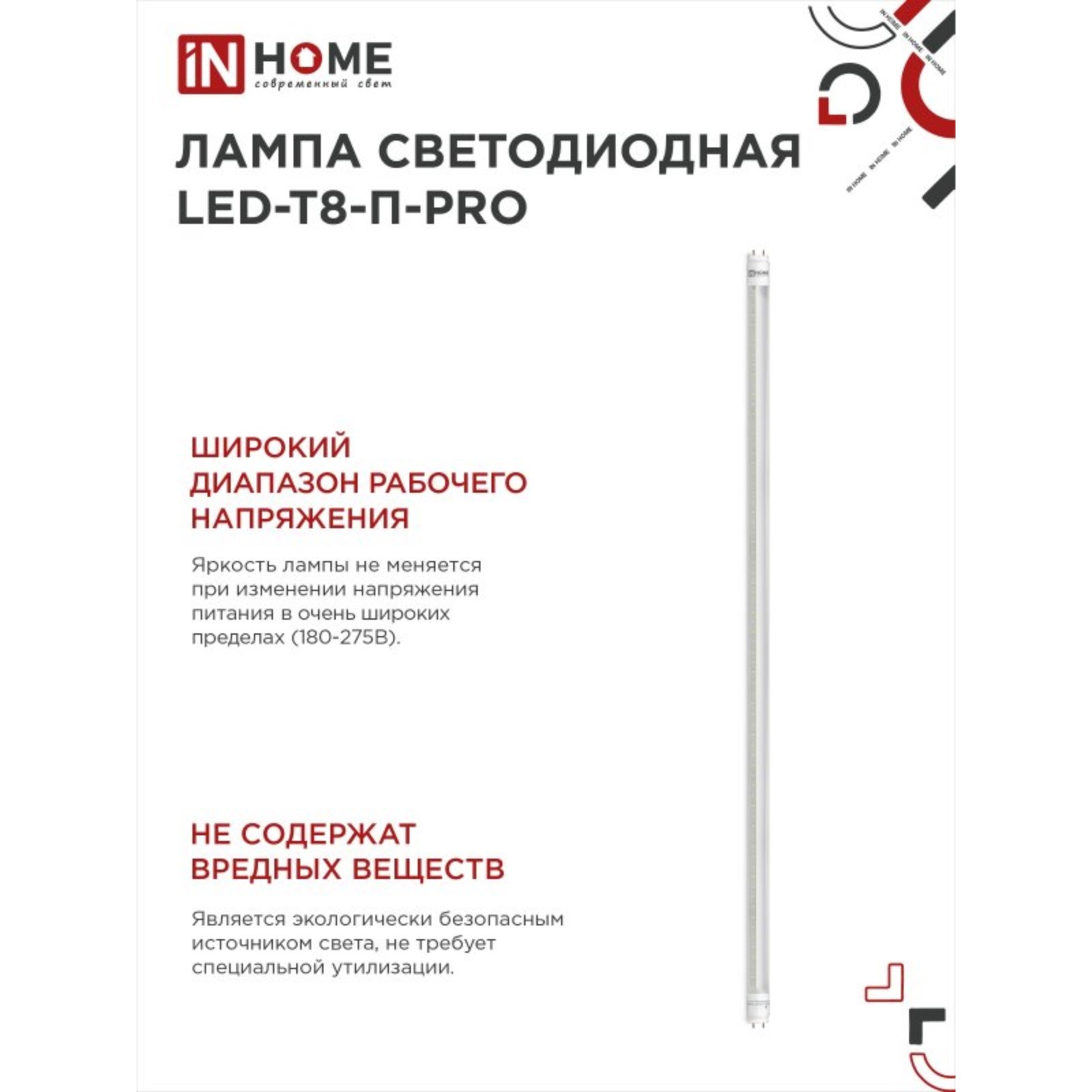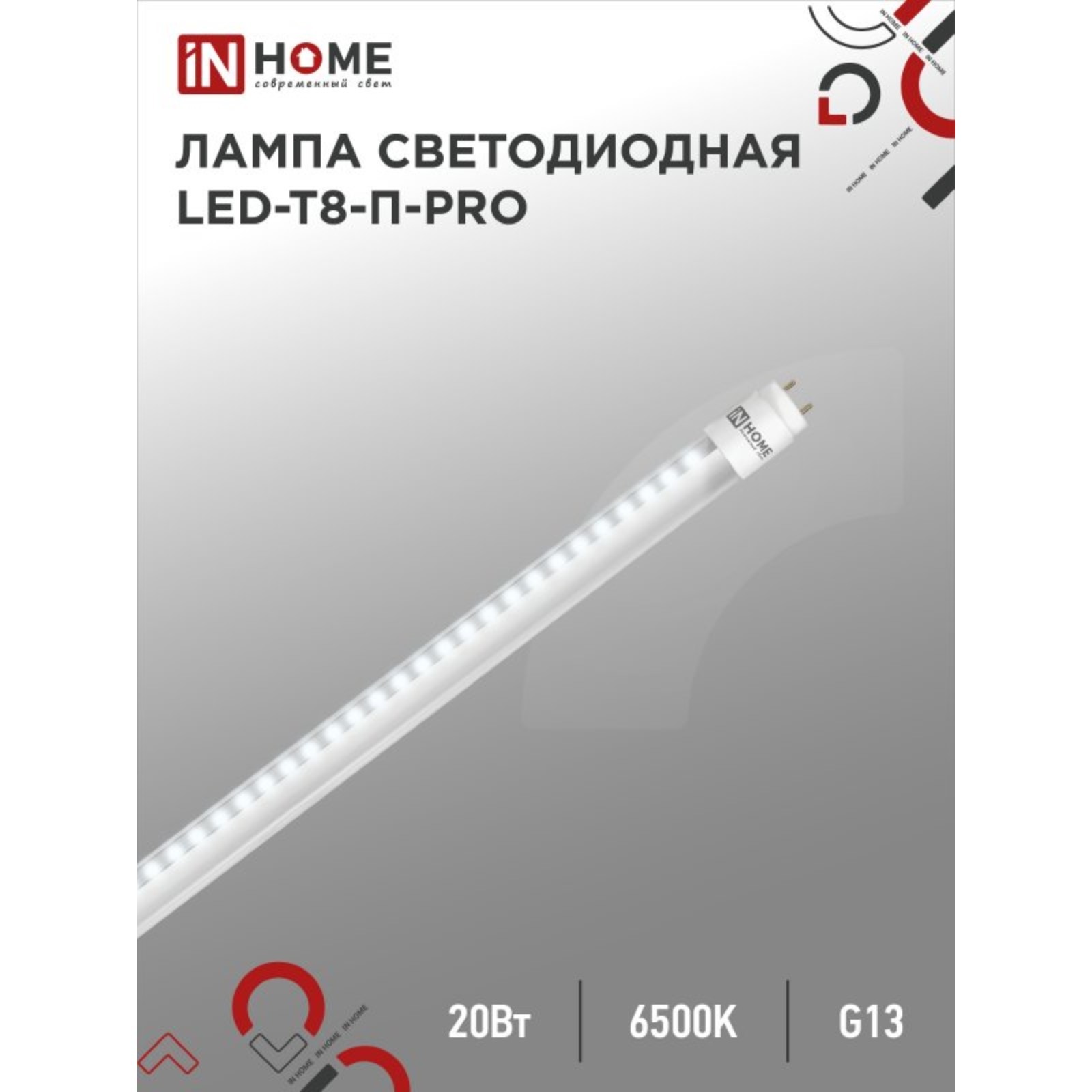 Лампа светодиодная In Home, G13, 20 вт, 1620 лм, 6500 к, 1200 мм, прозрачная, холодный белый