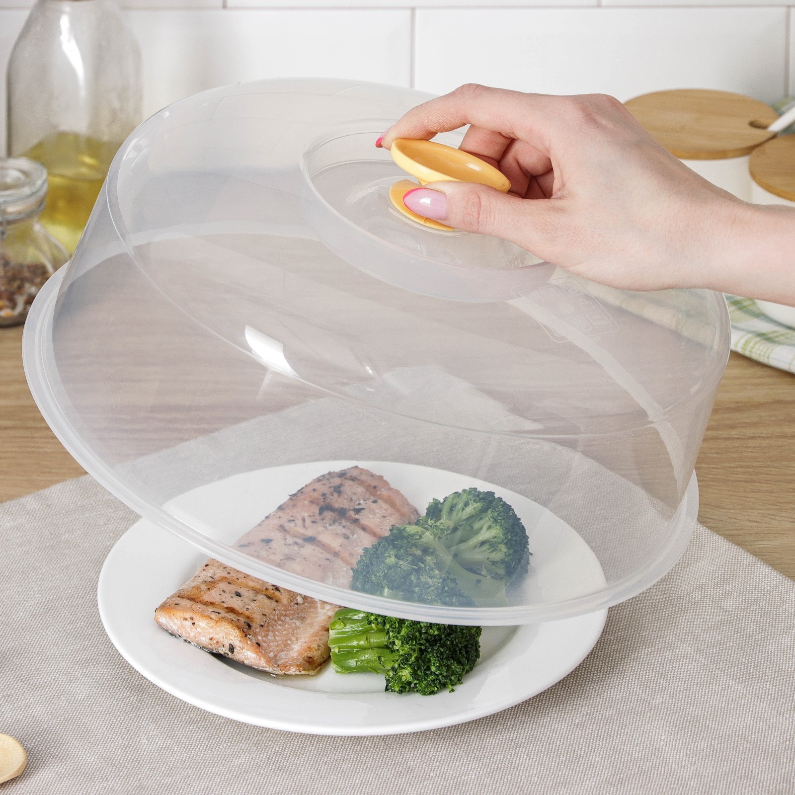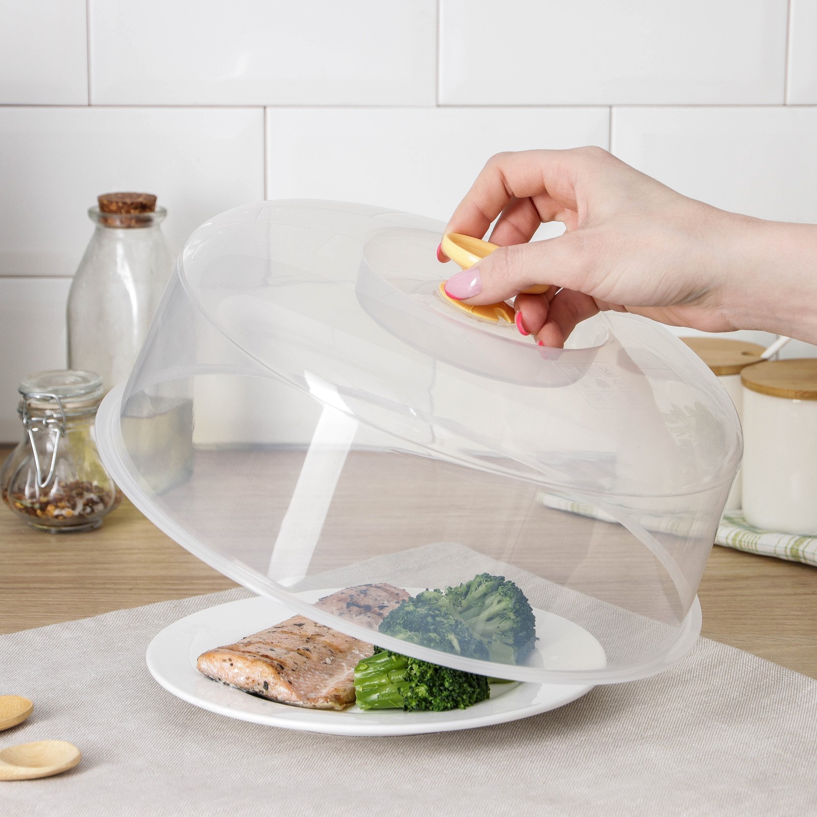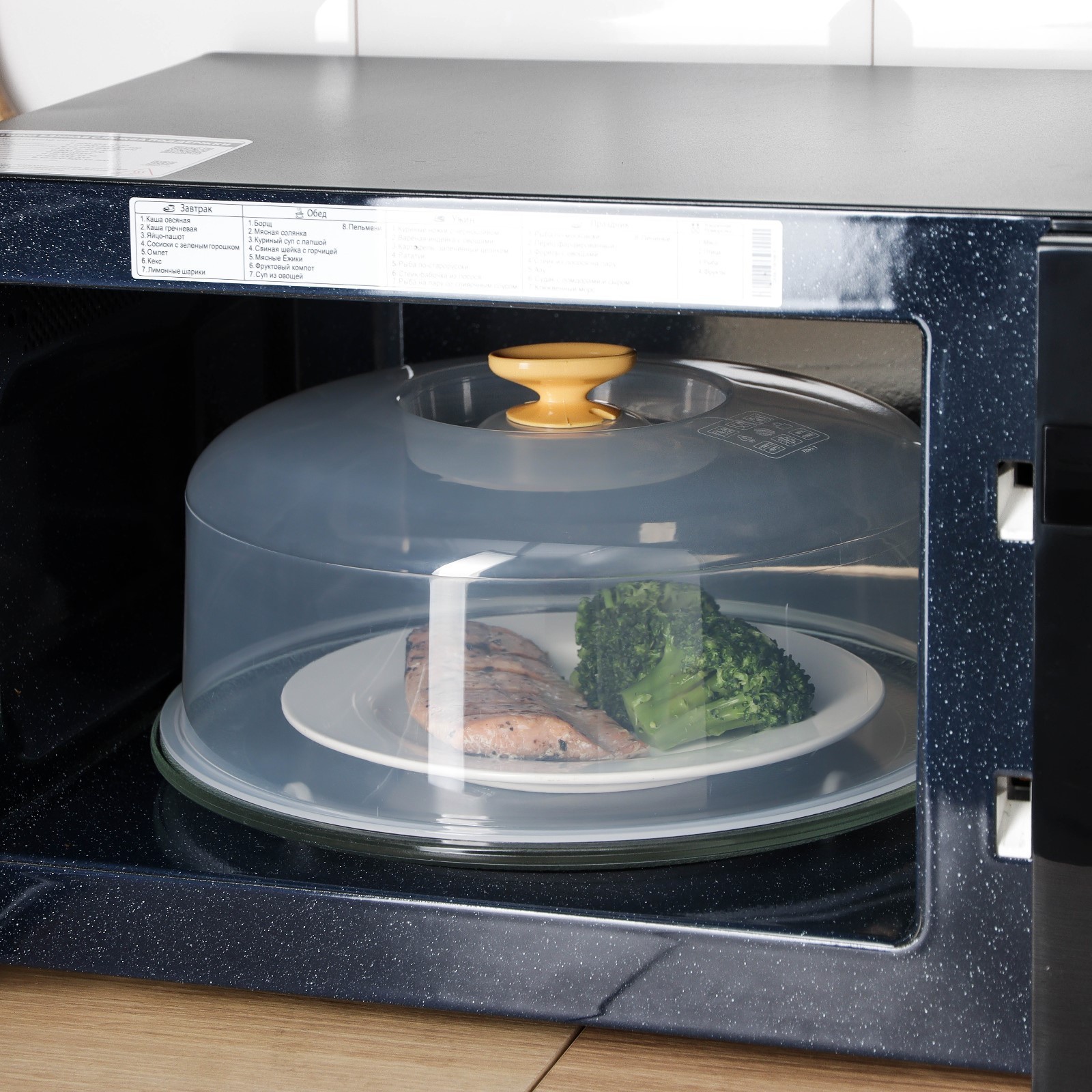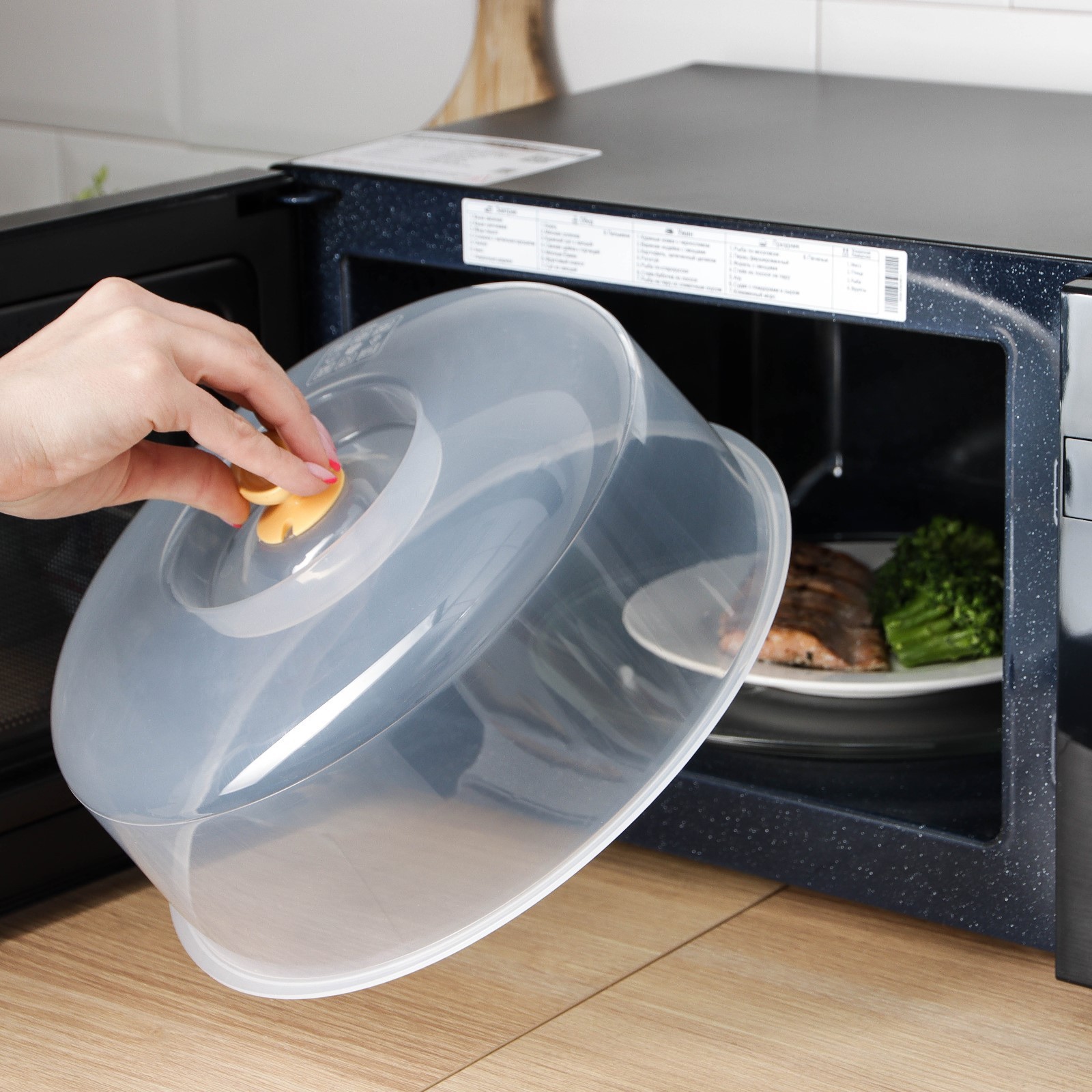 Крышка для свч, d=27 см, цвет микс. Крышка для СВЧ сохранит ваши блюда сочными после разогрева в микроволновой печи, а саму печь защитит от загрязнения. Особенности крышки для СВЧВозможно использование при температуре от –40 до +110 °C. Имеется отверстие для выхода пара. С помощью крышки пища разогревается равномернее. Можно использовать в холодильнике как крышку для торта, сыра и т. п. Легко почистить как в тёплой, так и в холодной воде с помощью моющих средств для посуды. Нельзя применять в микроволновых печах при режиме «Гриль». Не впитывает запахи. Легка и удобна в использовании. Долговечность, практичность и экономия времени. Цвет: МИКС Форма: Круглая Диаметр, см: 27 Материал: Пластик Температурное ограничение: Нет Пищевой пластик: Да Форма: Круг, шар, цилиндр  развернуть описание ▼