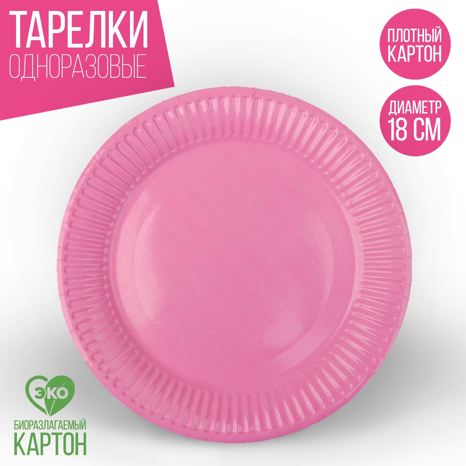 Тарелка одноразовая бумажная однотонная, цвет розовый
