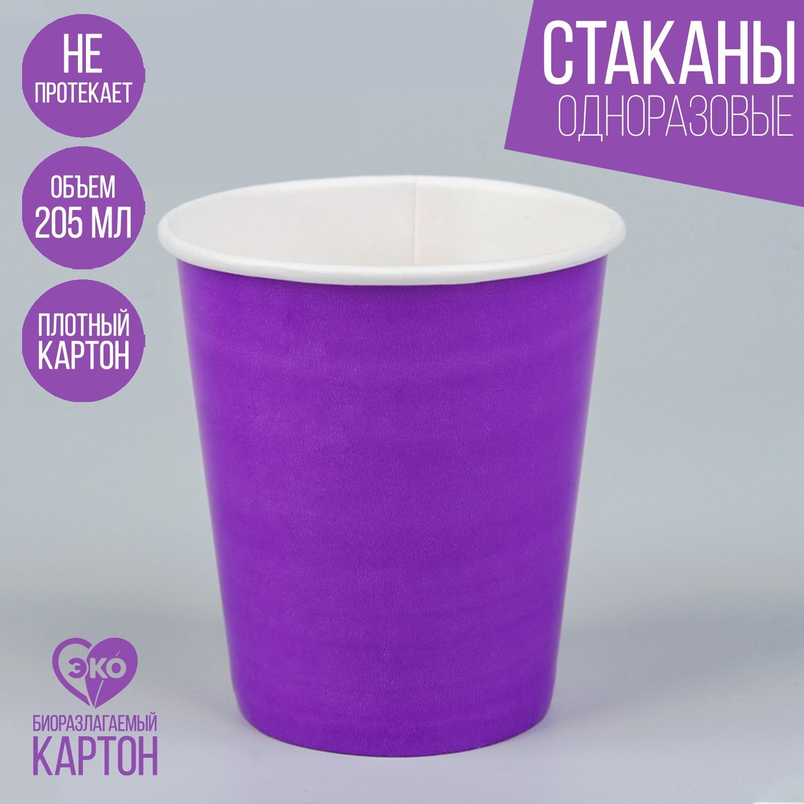 Стакан одноразовый бумажный, однотонный, цвет фиолетовый, 205 мл