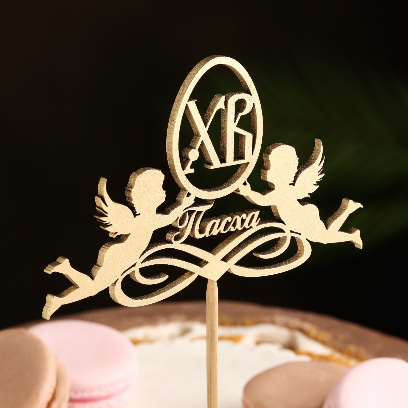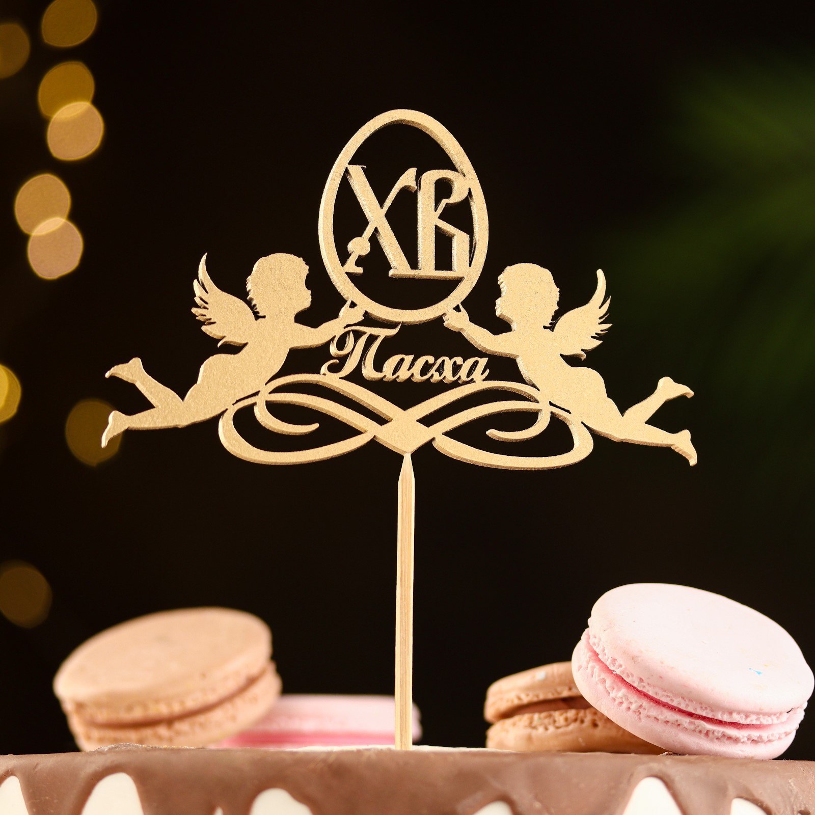 Топпер "пасха, ангелы", на подвесе, золотой дарим красиво