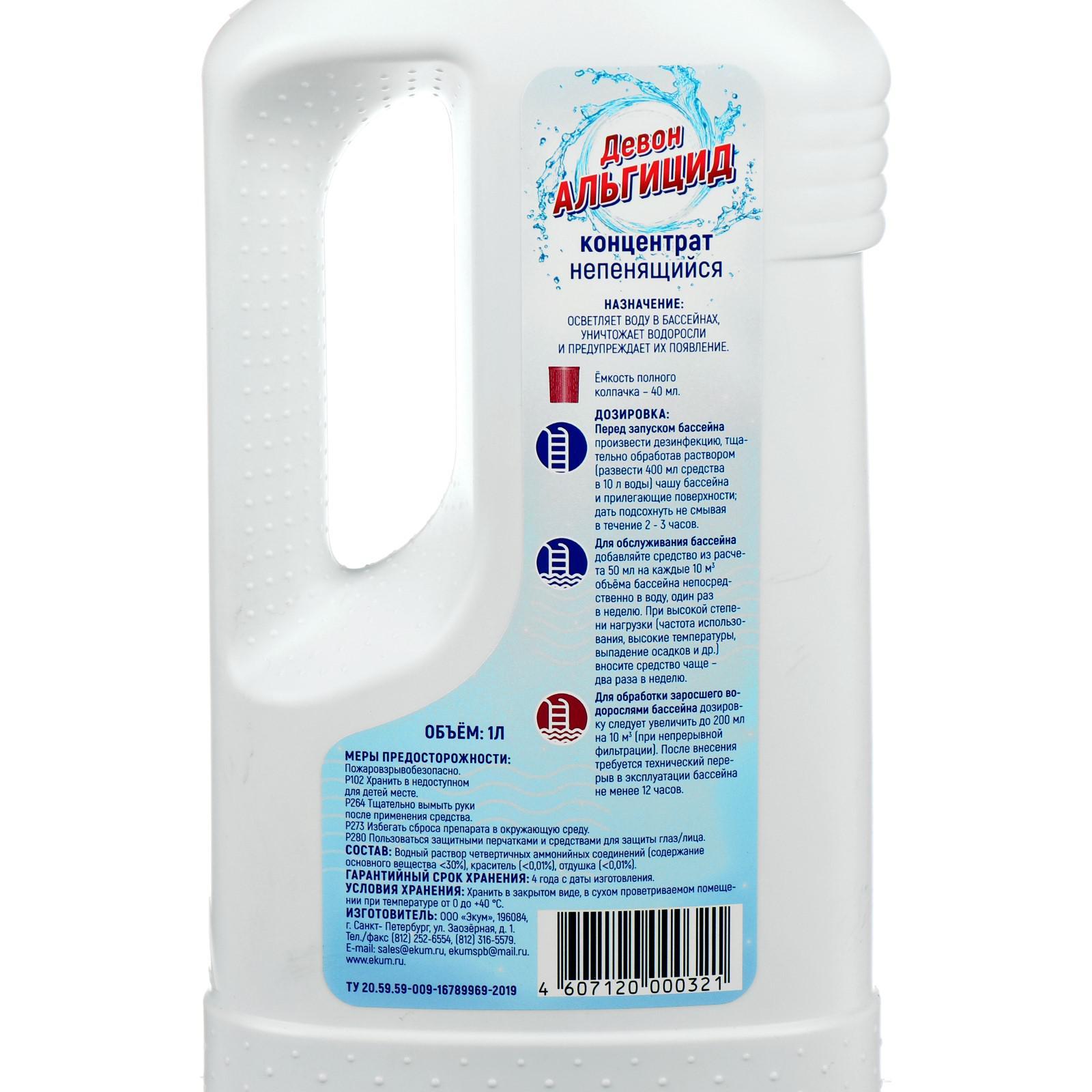 Средство для очистки воды в бассейне "девон-альгицид", 1 л