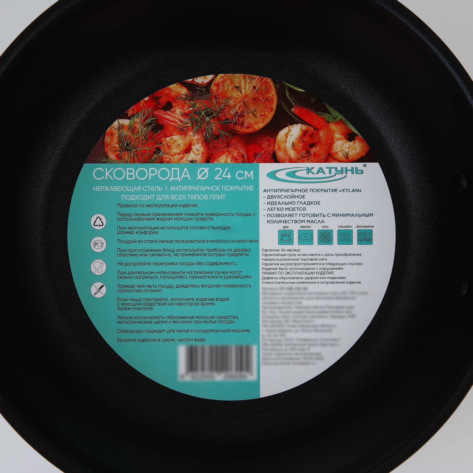 Сковорода «общепит», D=24 см, толщина корпуса 0,6 мм, дно 3,5 мм, с теплораспределительным слоем, антипригарное покрытие, индукц