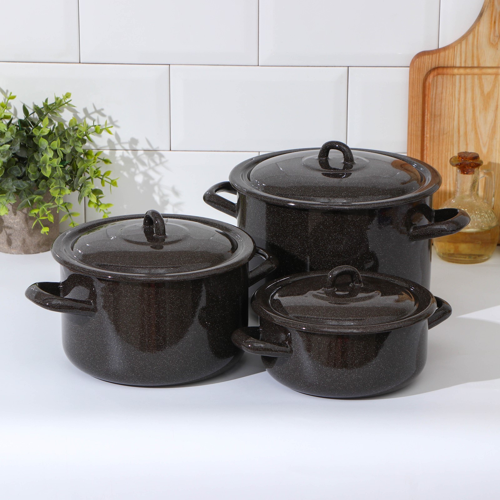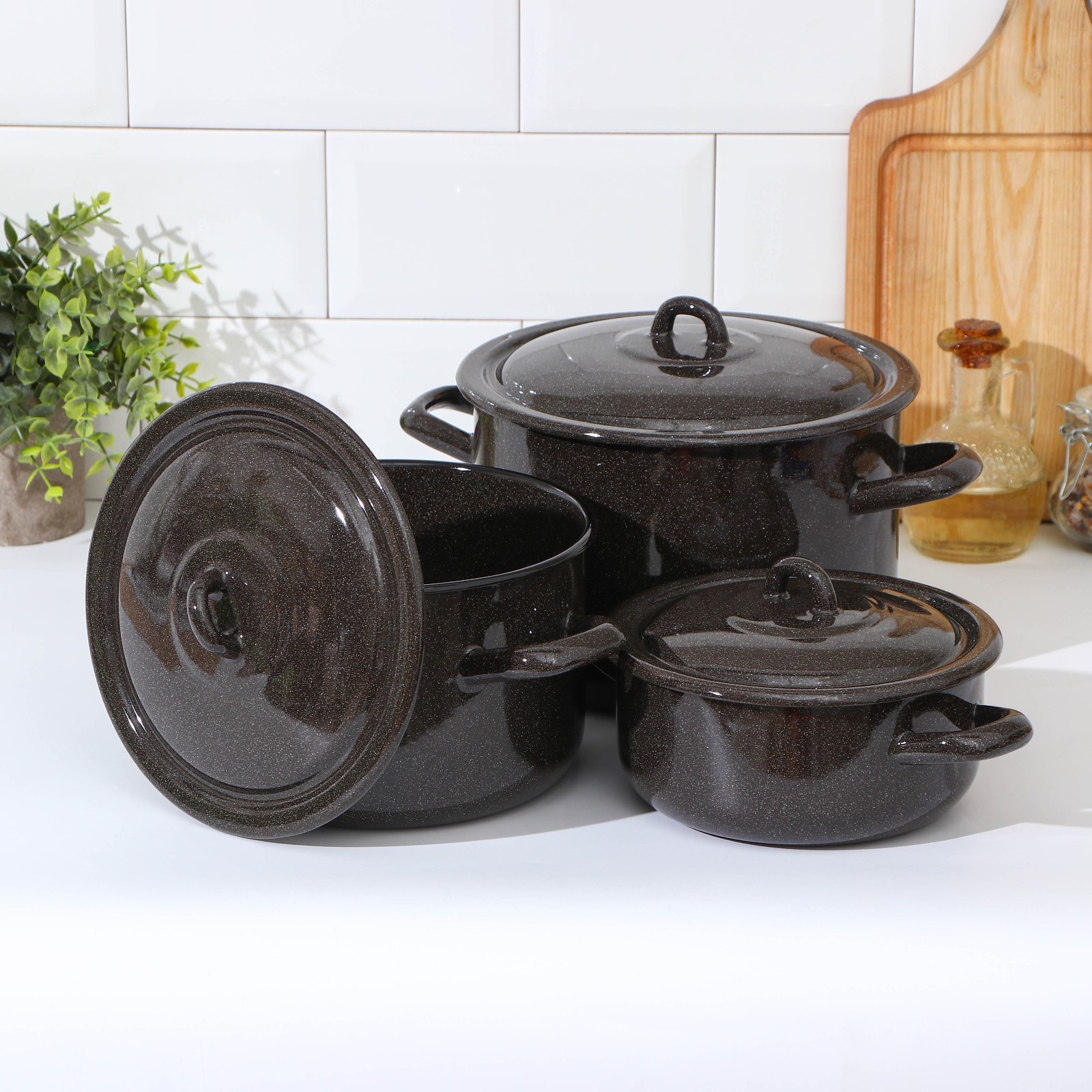 Набор кастрюль «гранит», 3 предмета: 1,5 л, 3 л, 4,5 л, индукция, цвет коричневый