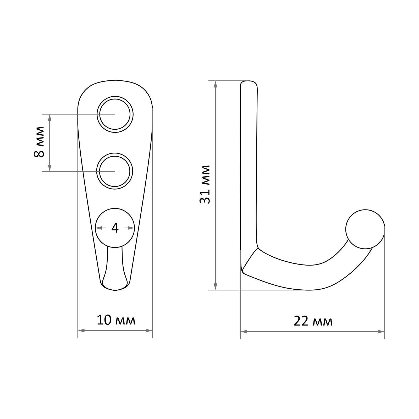 Крючок мебельный CAPPIO BELLO, двухрожковый, черный Крючок мебельный ТУНДРА TKD016, двухрожковый, медь