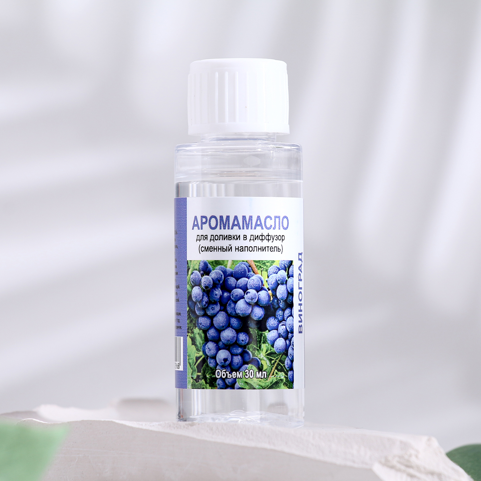 Аромамасло для доливки в диффузор "виноград", длительного действия, 30 мл. Объём, мл: 30 Вид ароматизатора: В бутылочке Аромат: Виноград Группа ароматов: Ягодные Температурное ограничение: Нет  развернуть описание ▼