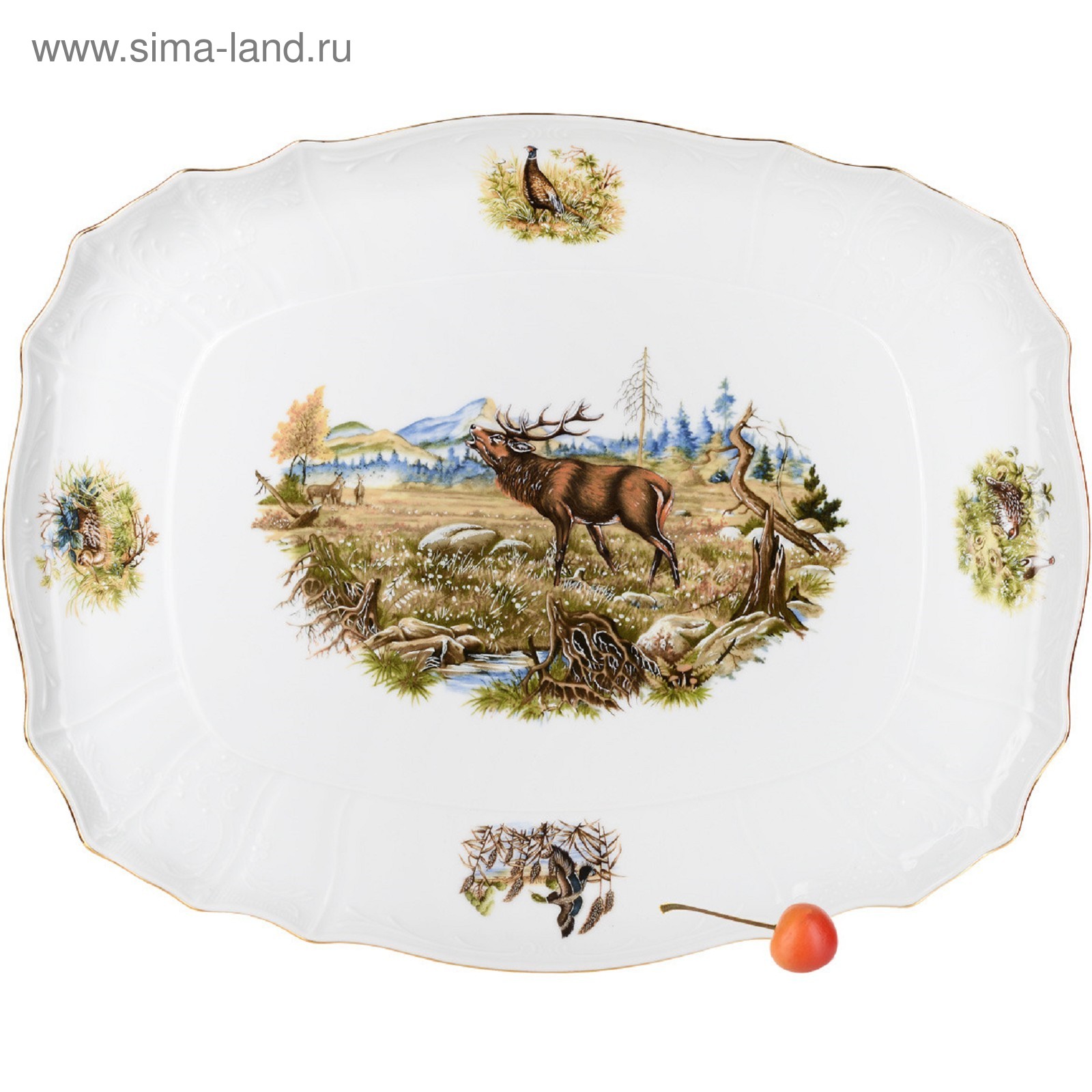 Поднос прямоугольный с ручками Bernadotte, декор «охотничьи сюжеты», 40 см