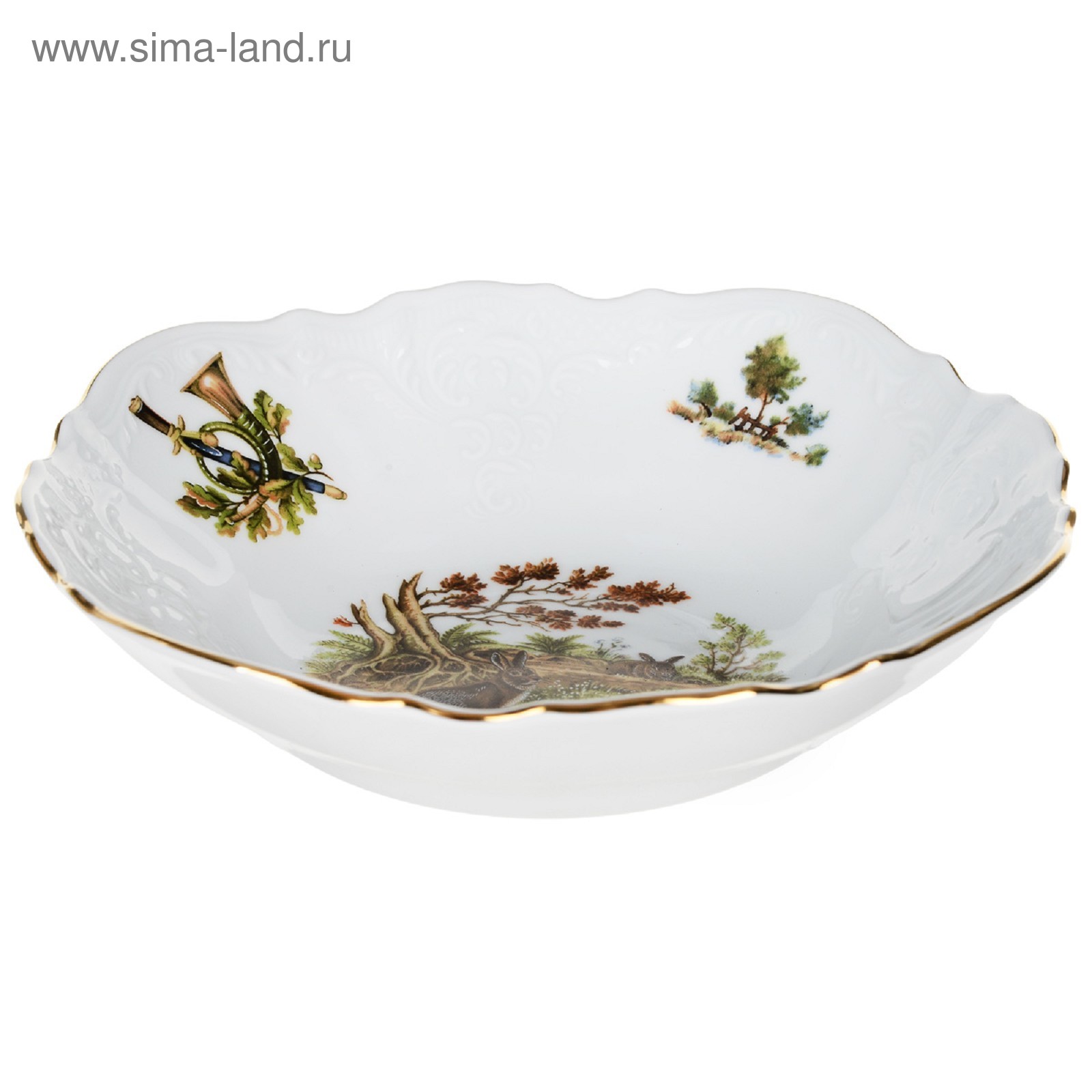 Салатник круглый Bernadotte, декор «охотничьи сюжеты», 19 см