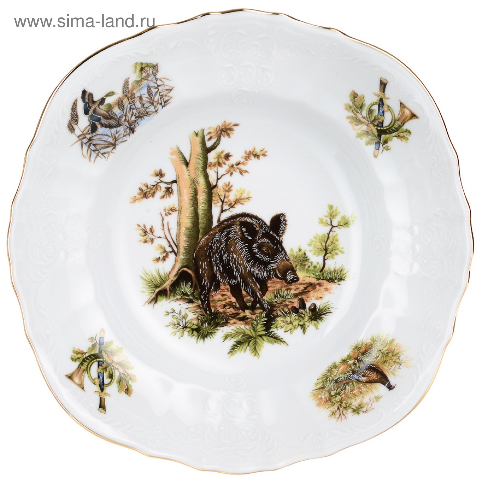 Салатник круглый Bernadotte, декор «охотничьи сюжеты», 25 см