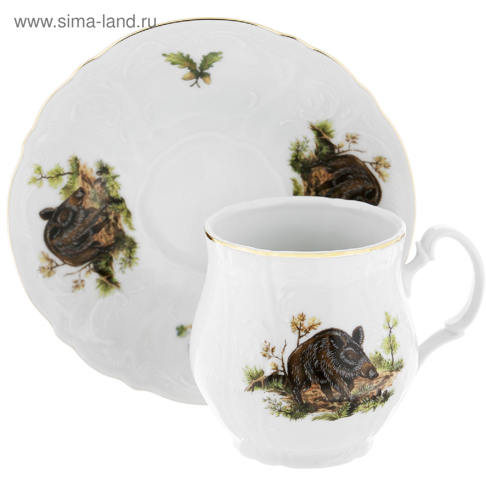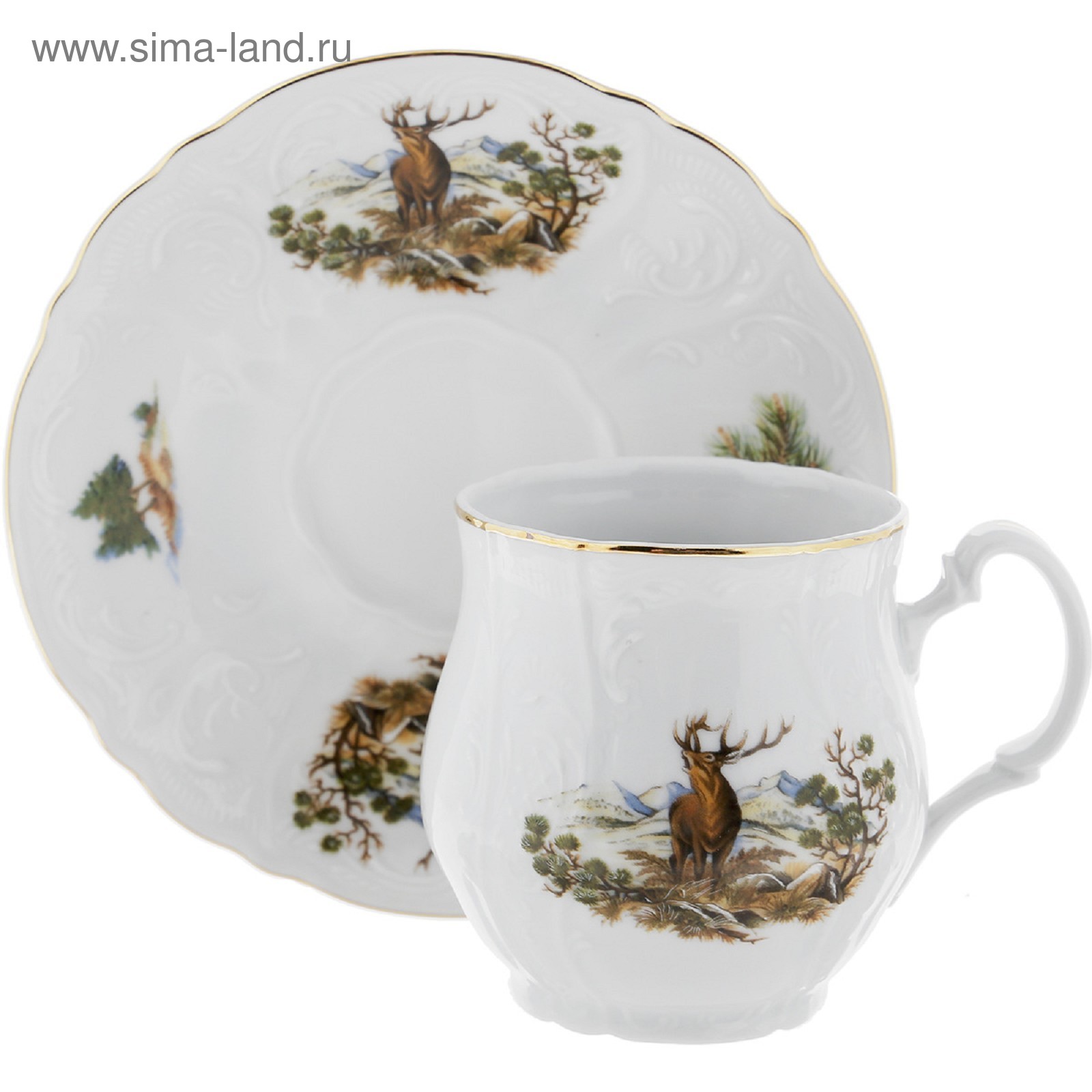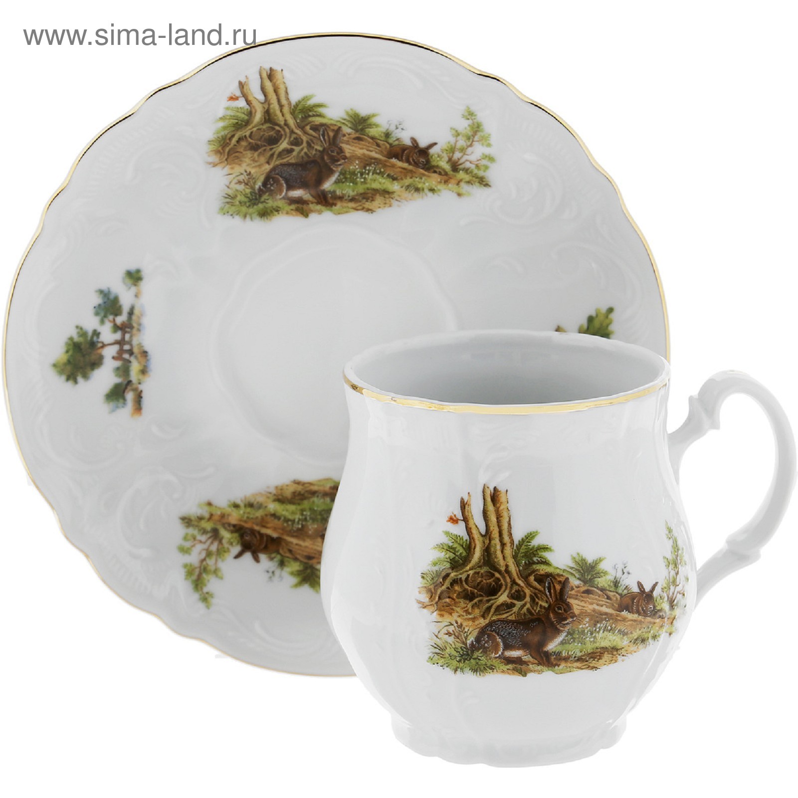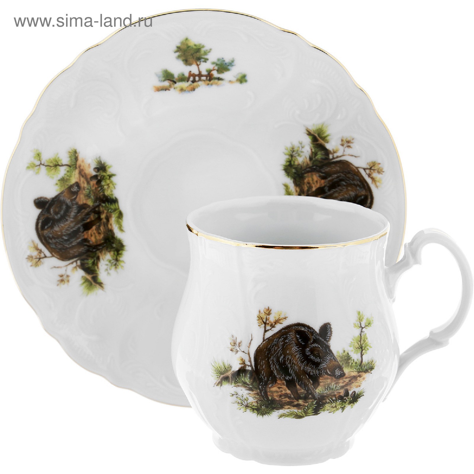 Чашка для чая 310 мл с блюдцем 160 мм bernadotte, декор «охотничьи сюжеты», цвет микс.
