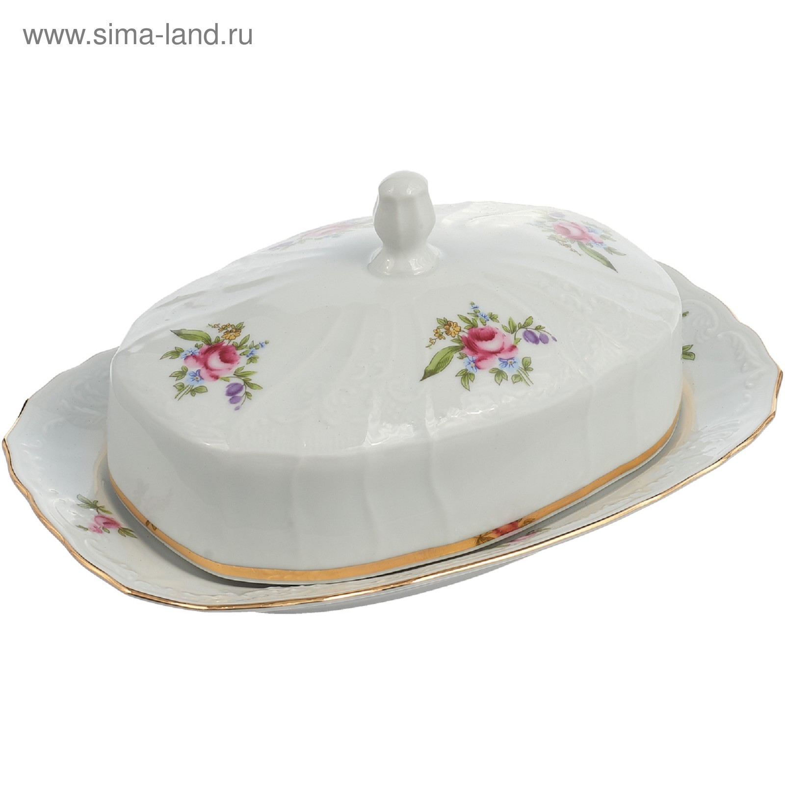 Маслёнка Bernadotte, декор «мейсенский букет», 21 X 12 X 9 см