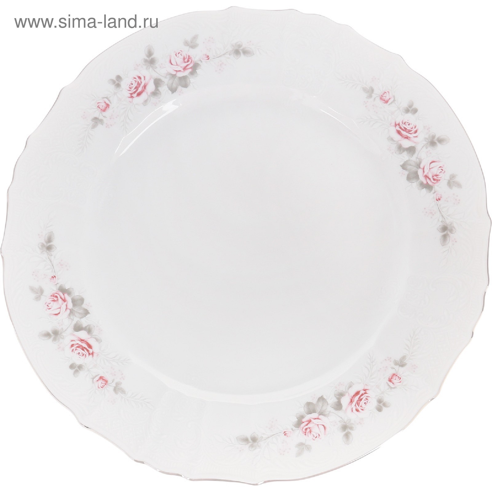 Блюдо круглое Bernadotte, декор «бледные розы, отводка платина», 30 см