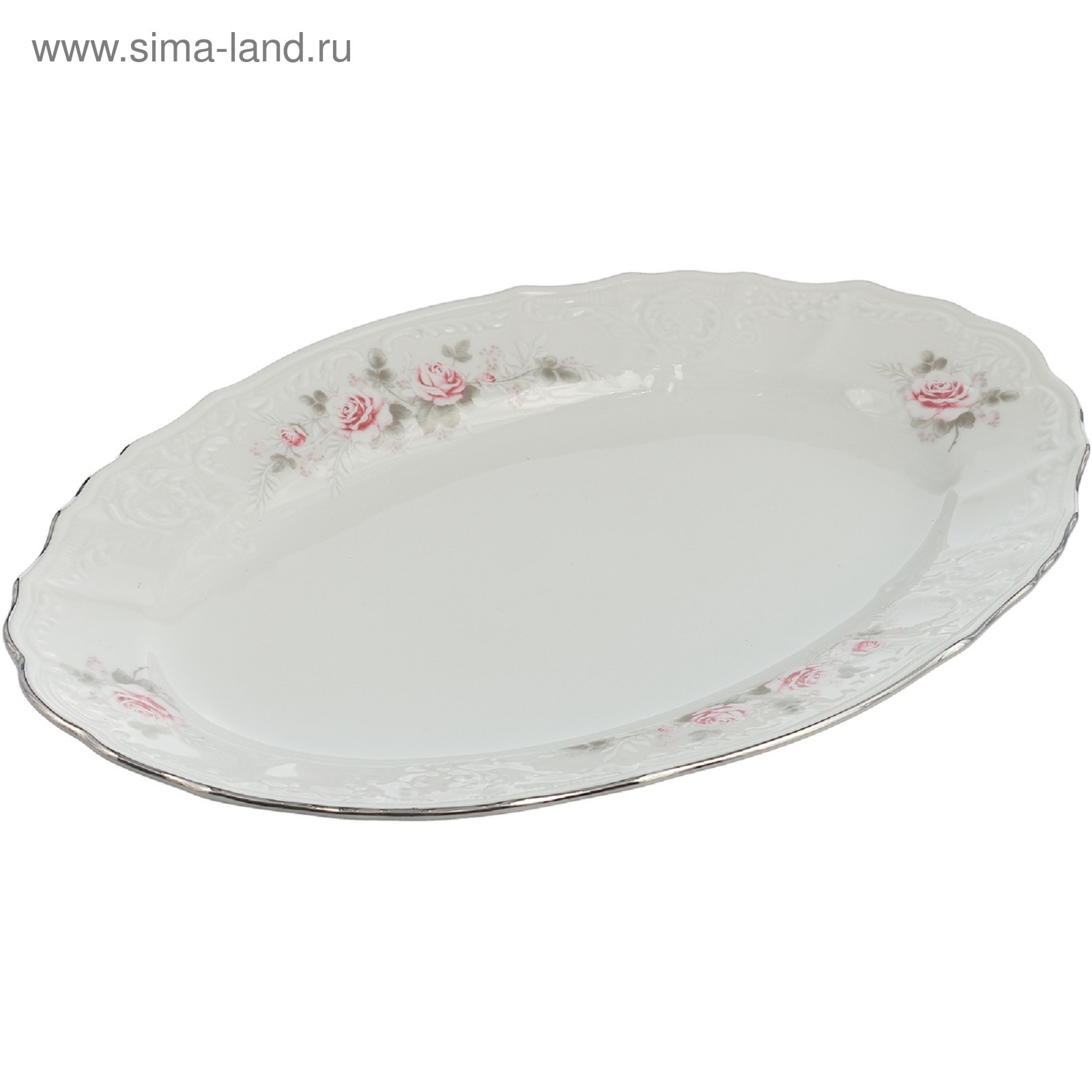 Блюдо овальное Bernadotte, декор «бледные розы, отводка платина», 26 см