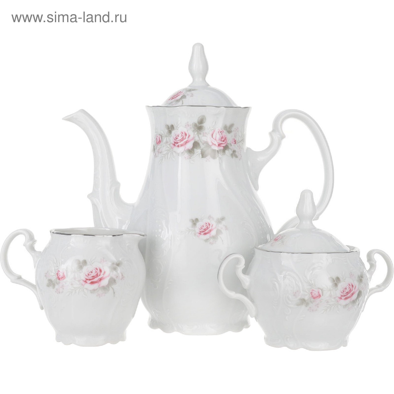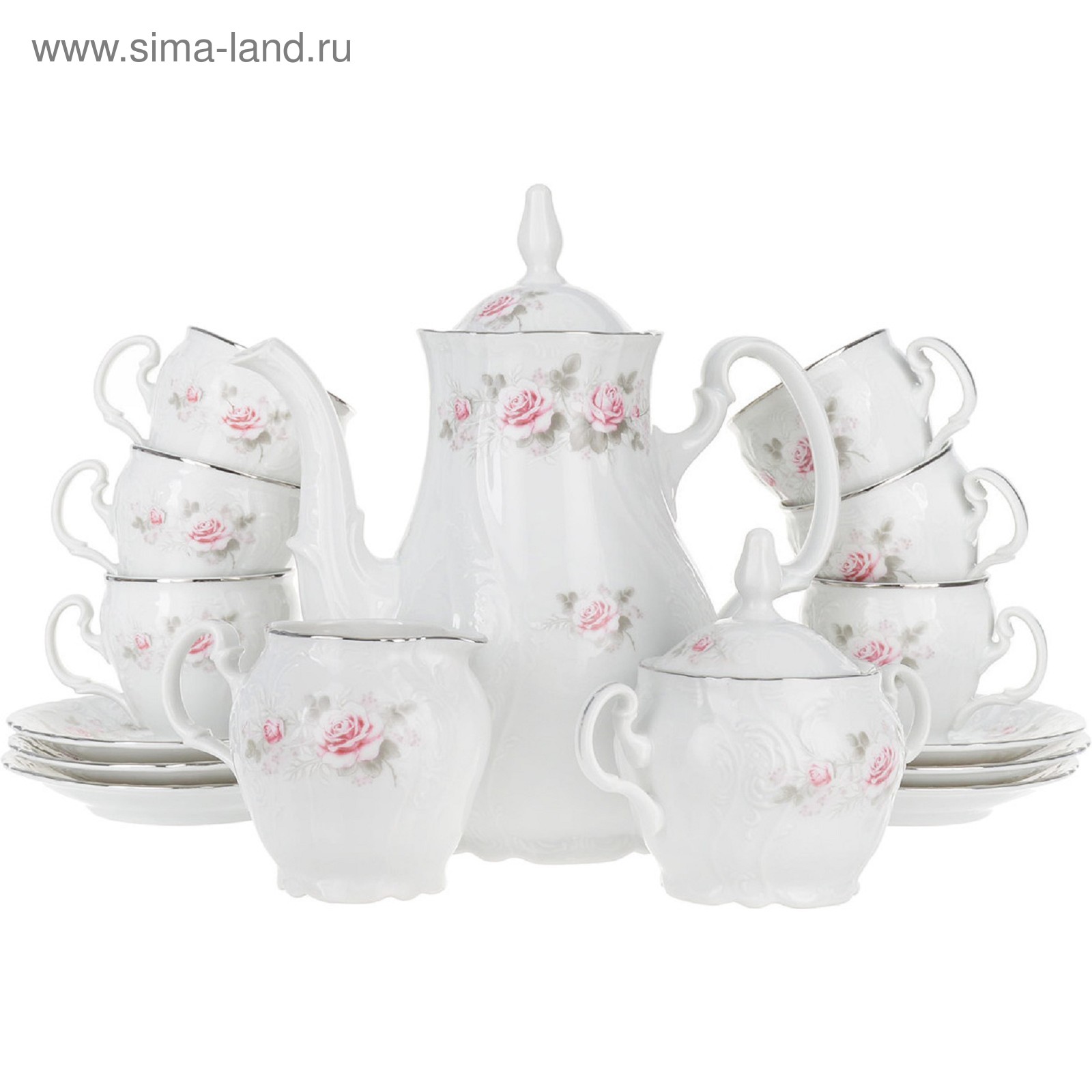 Кофейный сервиз 6/9 Bernadotte, декор «бледные розы, отводка платина», 15 предметов