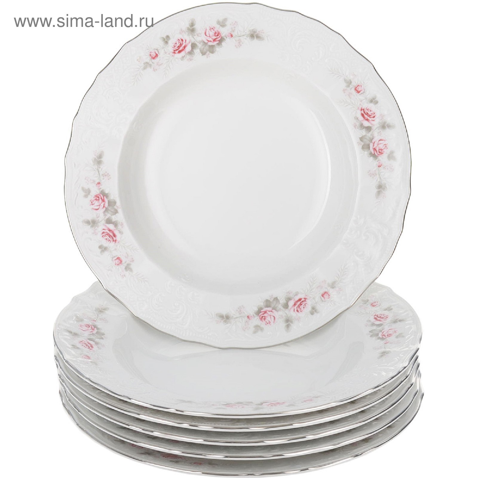 Тарелка глубокая Bernadotte, декор «бледные розы, отводка платина», 23 см
