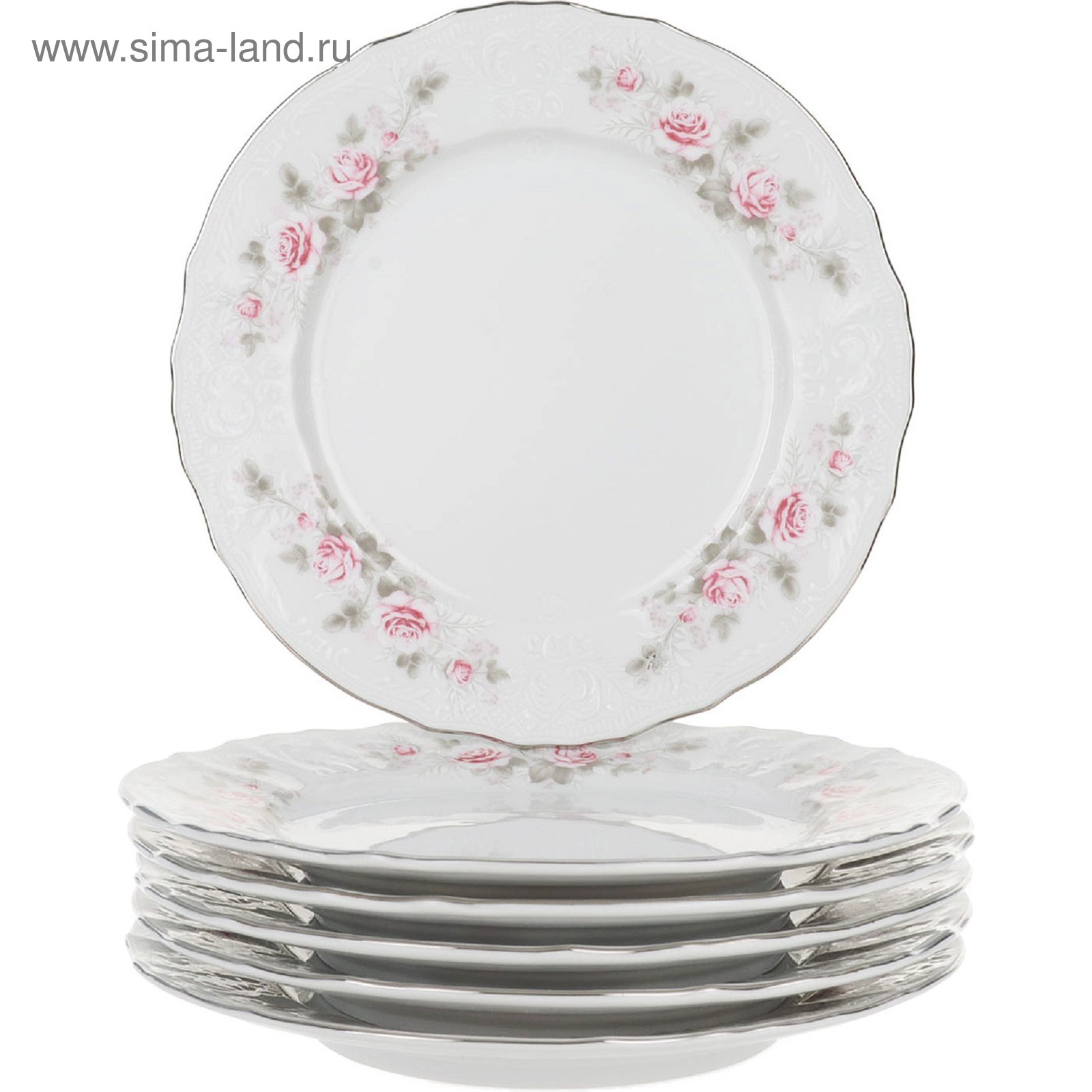 Тарелка десертная Bernadotte, декор «бледные розы, отводка платина», 19 см