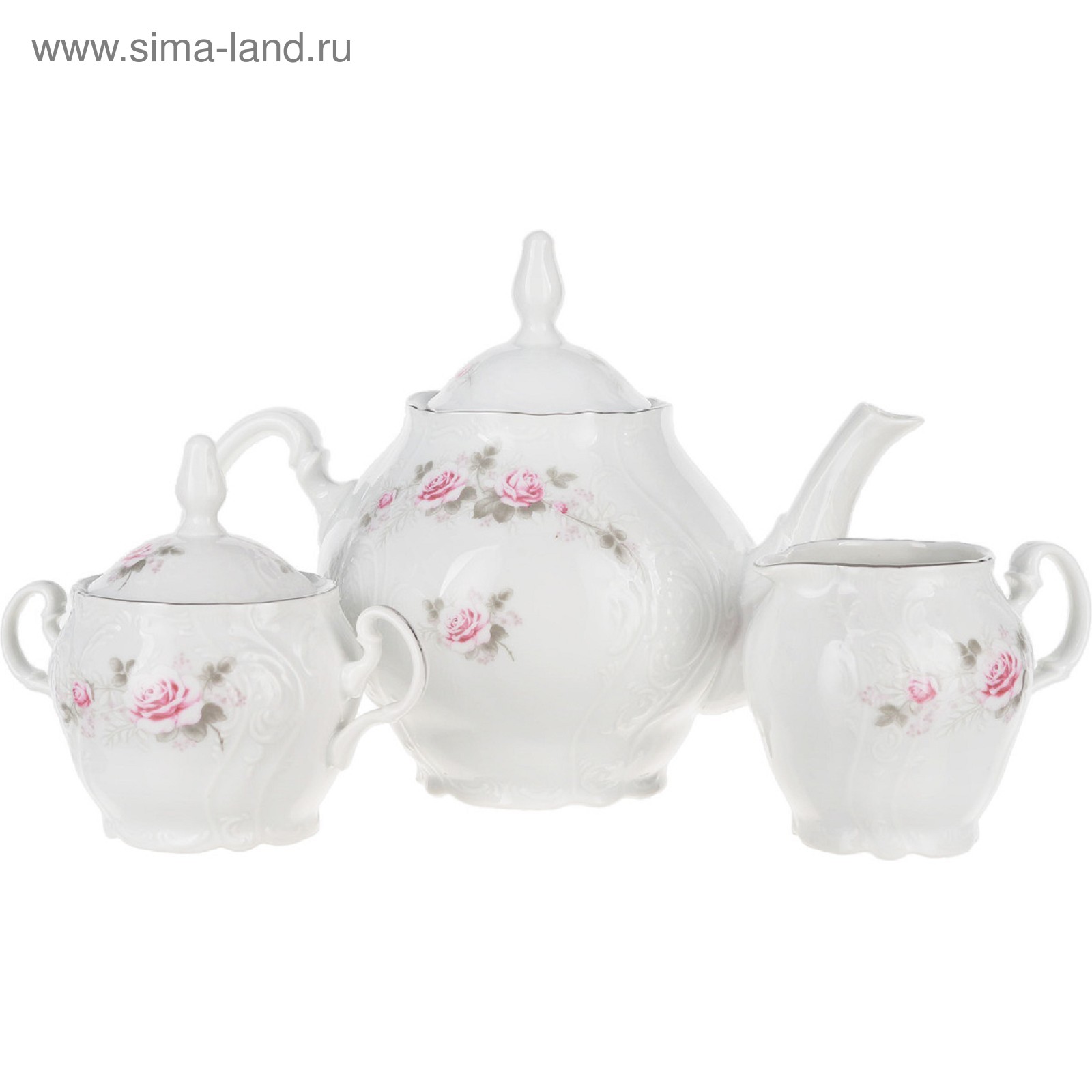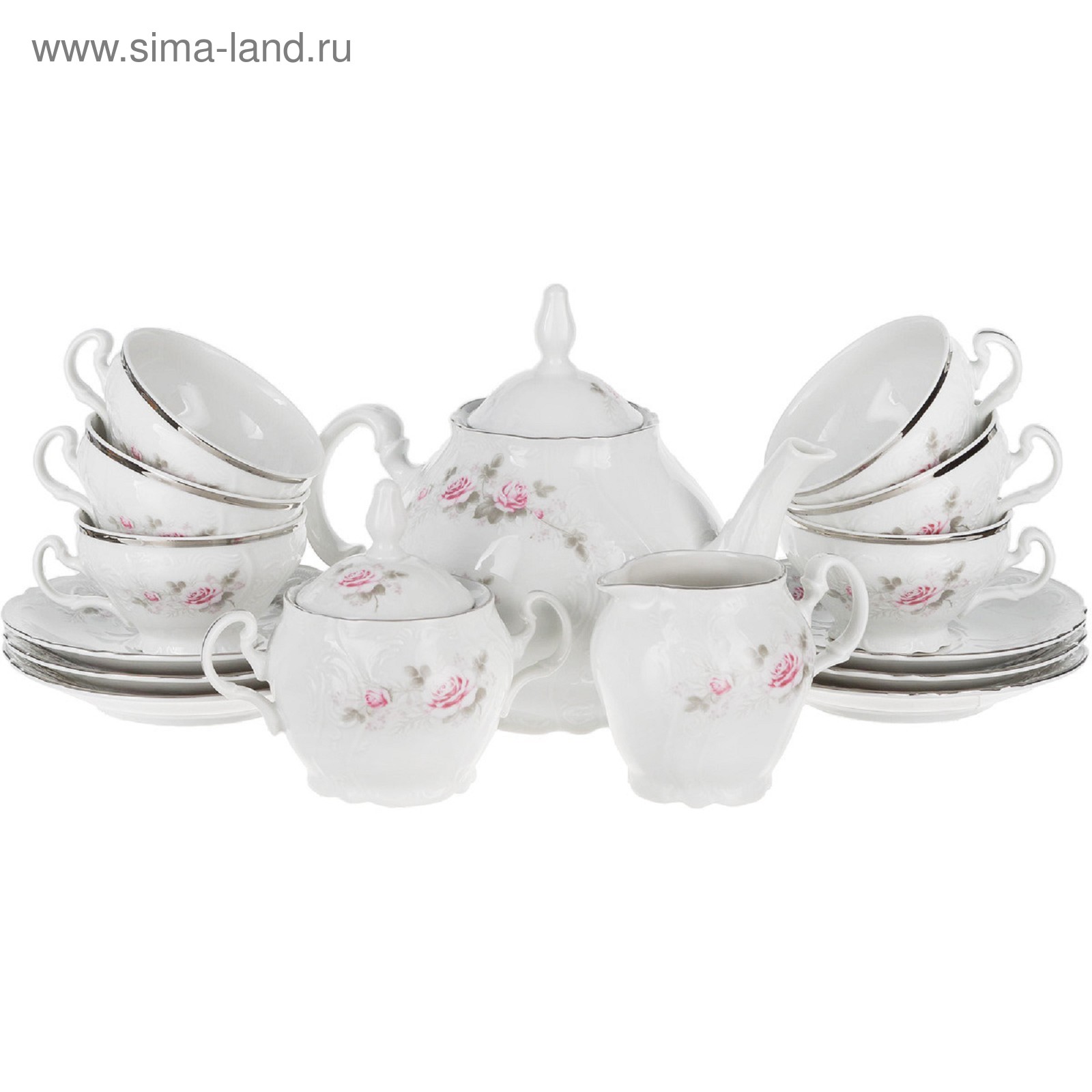 Чайный сервиз 6/9 Bernadotte, декор «бледные розы, отводка платина», 15 предметов