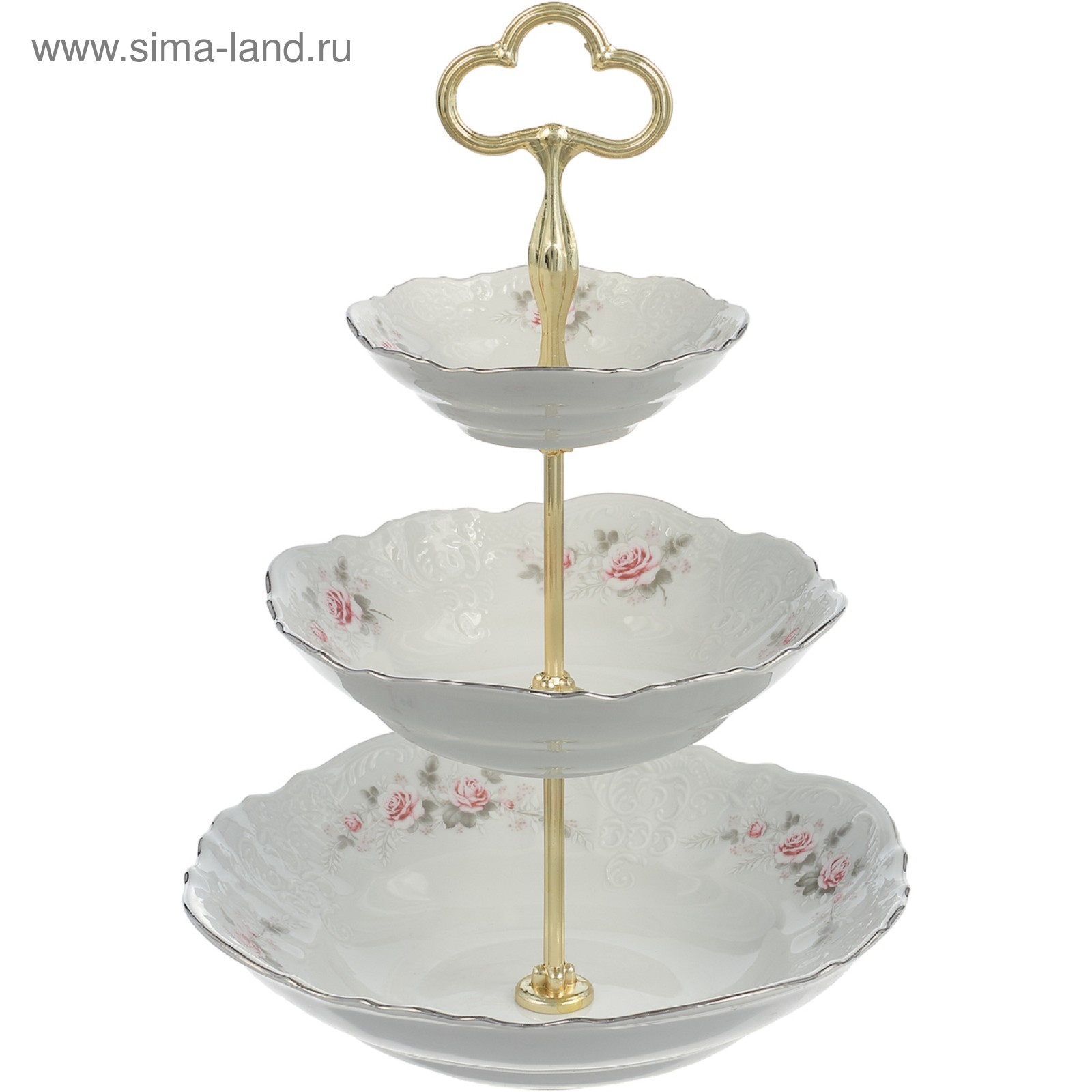 Этажерка для фруктов 3-х ярусная Bernadotte, декор «бледные розы, отводка платина»