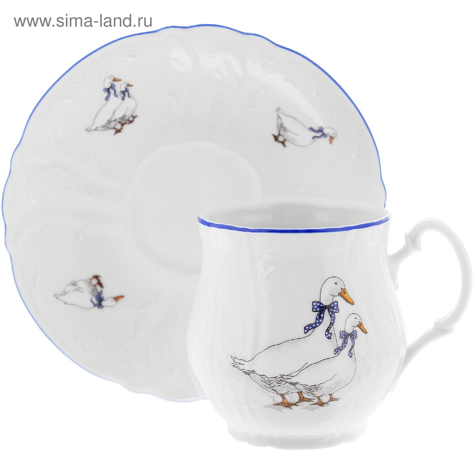 Чашка для чая 310 мл с блюдцем 160 мм Bernadotte, декор «гуси»