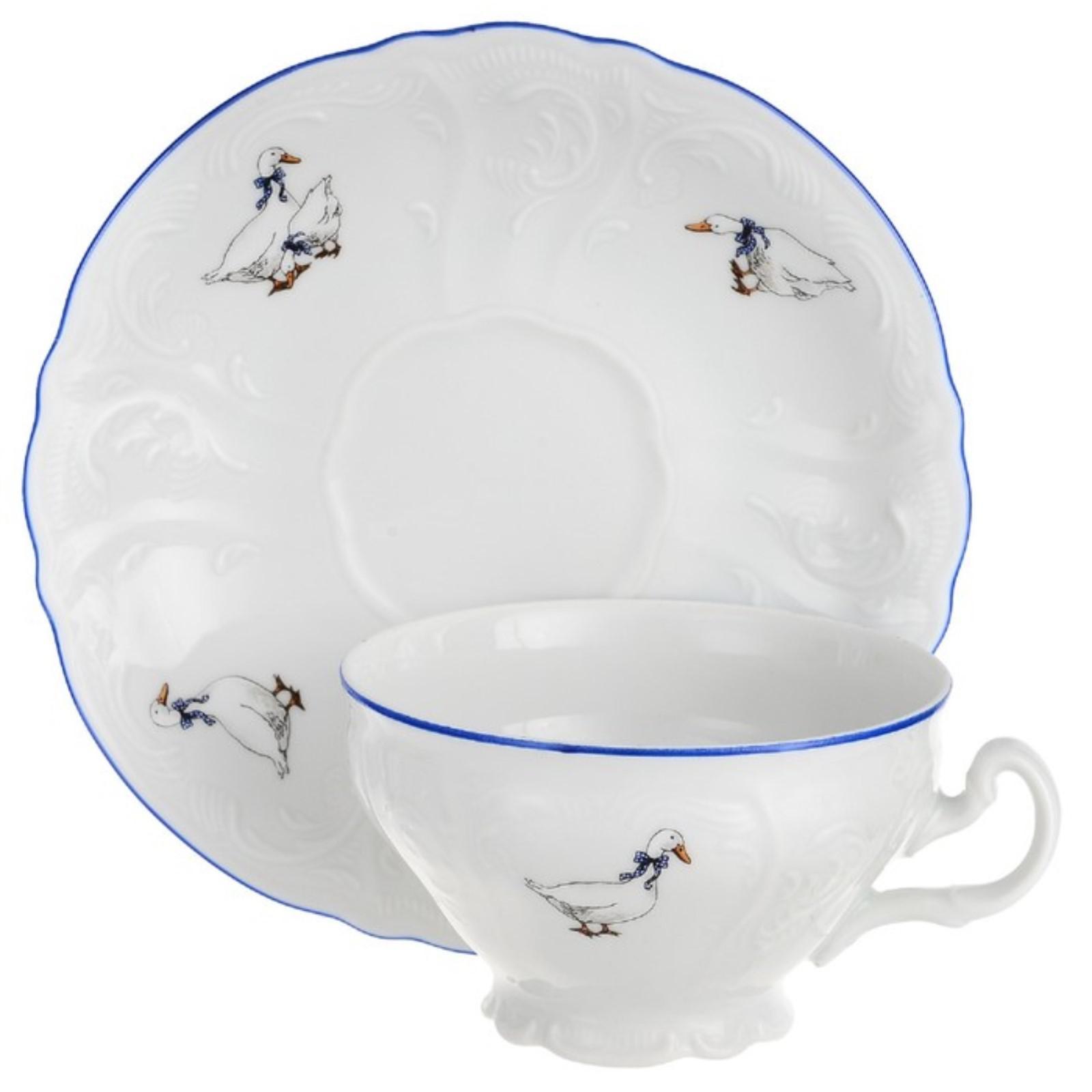 Чашка 360 мл с блюдцем 180 мм низкая Bernadotte, декор «гуси»